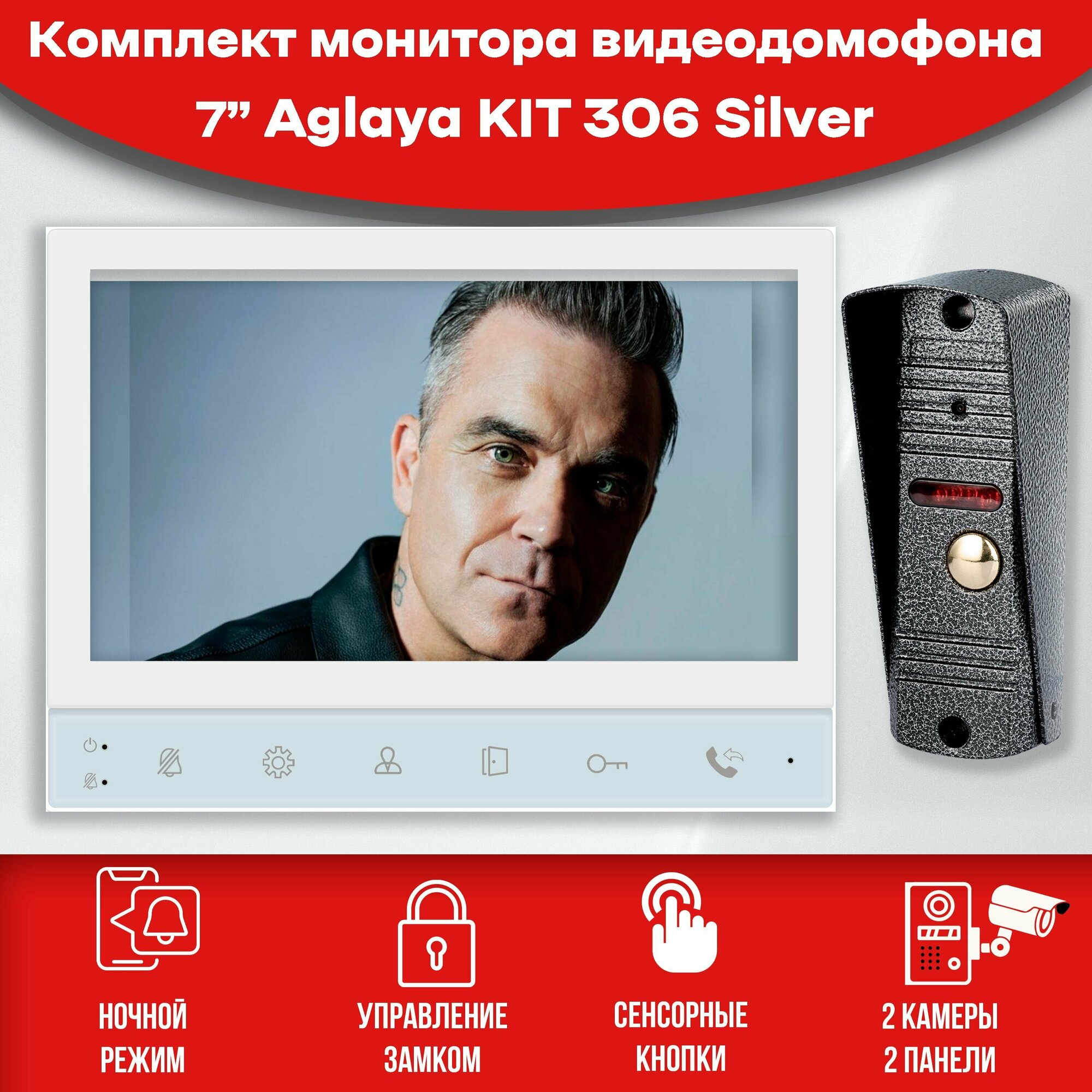 Купить Комплект видеодомофона Aglaya-KIT+вызывная панель(306sl), белый. Экран 7". Совместим с подъездным домофоном через модуль сопряжения.