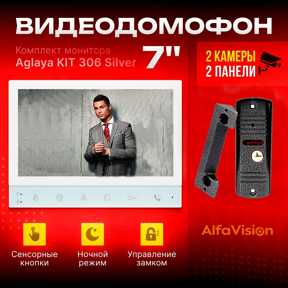 Комплект видеодомофона Aglaya-KIT+вызывная панель(306sl), белый. Экран 7". Совместим с подъездным домофоном через модуль сопряжения. интересное: