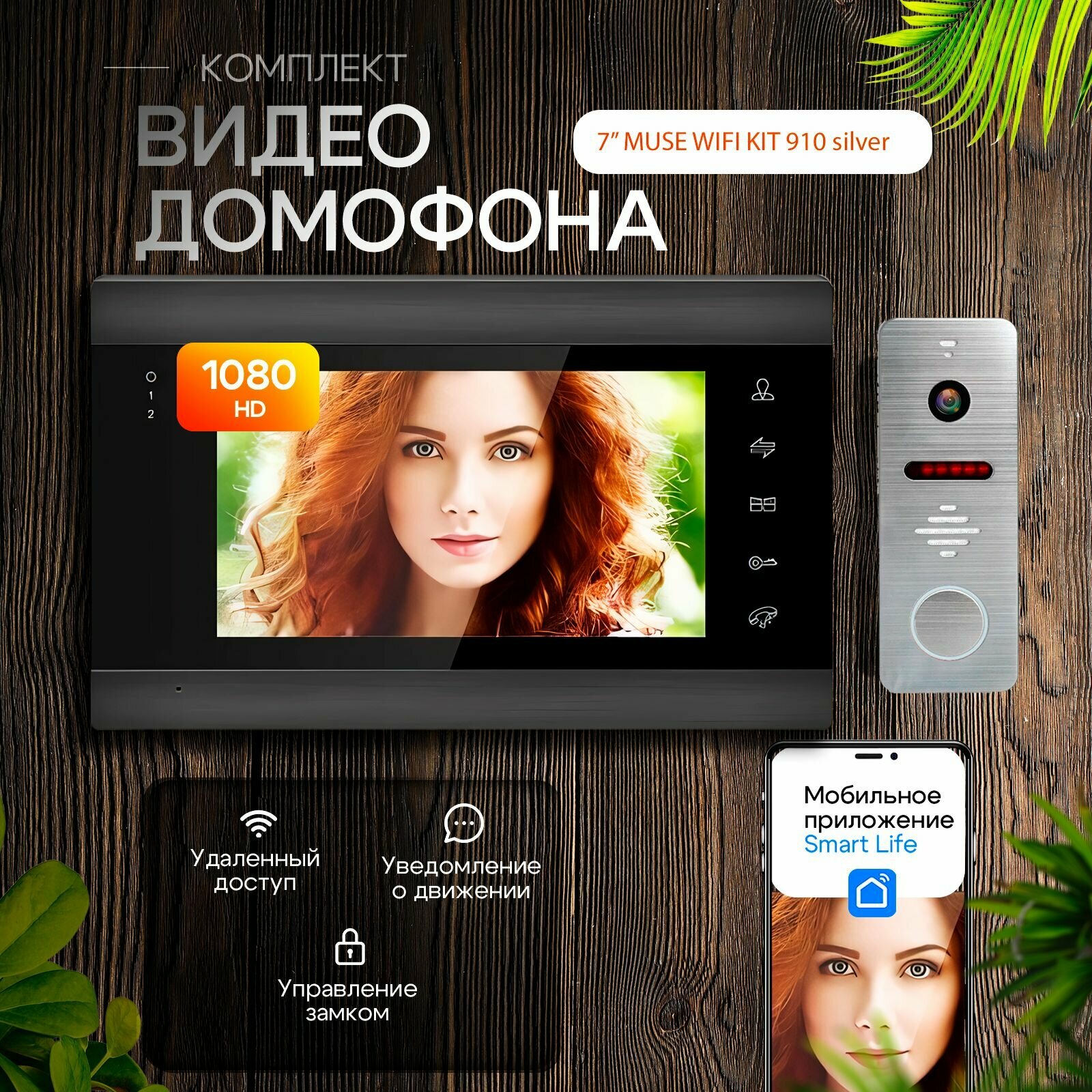 Комплект видеодомофона MUSE WIFI-KIT FullHD (910sl) 7 дюймов, /видеодомофон в квартиру / в подъезд интересное: