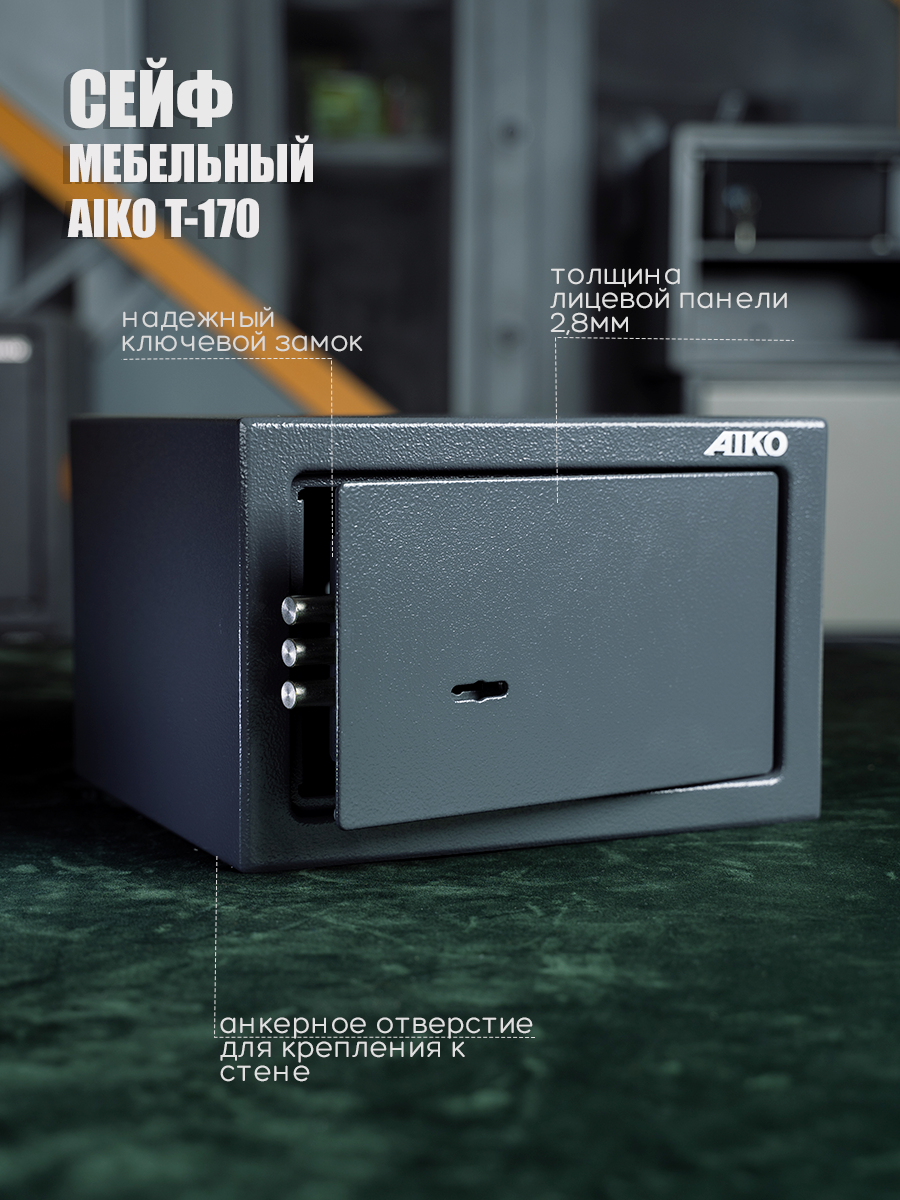 Сейф AIKO "Т-170", для бумаг и ценностей, ключевой замок, цвет RAL 7024