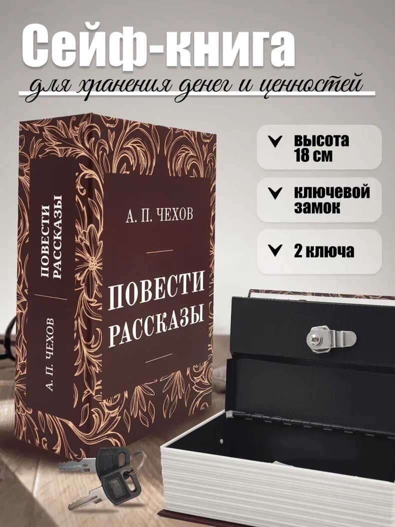 Книга сейф шкатулка для денег с замком AXLER, тайник для хранения денег с ключом металлический, "Повести, рассказы" интересное: