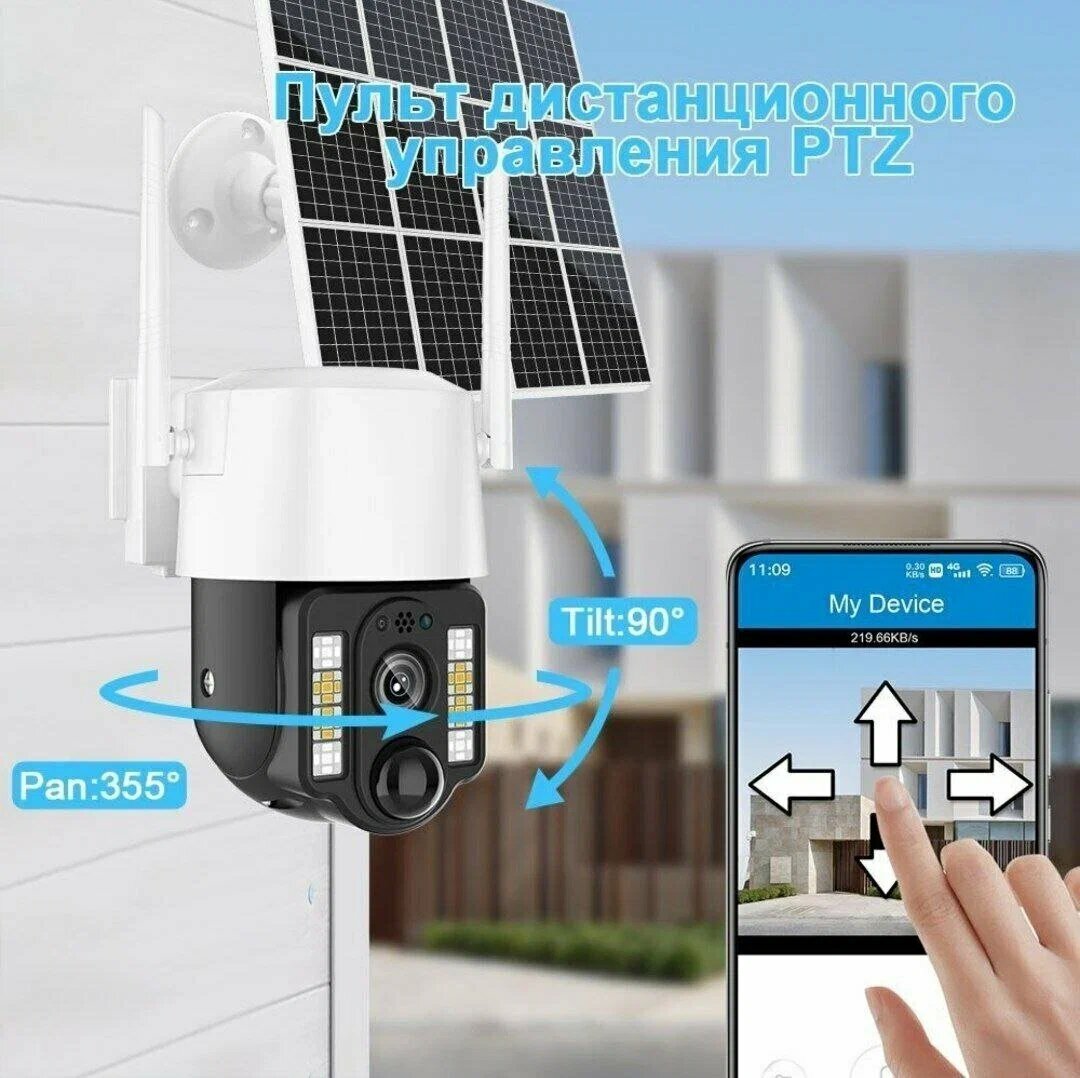 Уличная Двойная камера 4G LTE, с микрофоном, ночной съемкой, датчик движения/на солнечных батареях, в комплект +Сим карта интересное:
