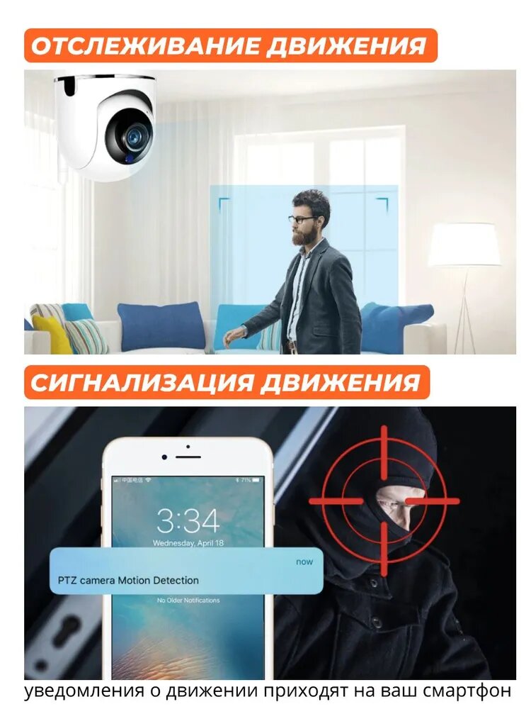 IP-камера видеонаблюдения Wi-Fi для дома с обзором 360 градусов белая