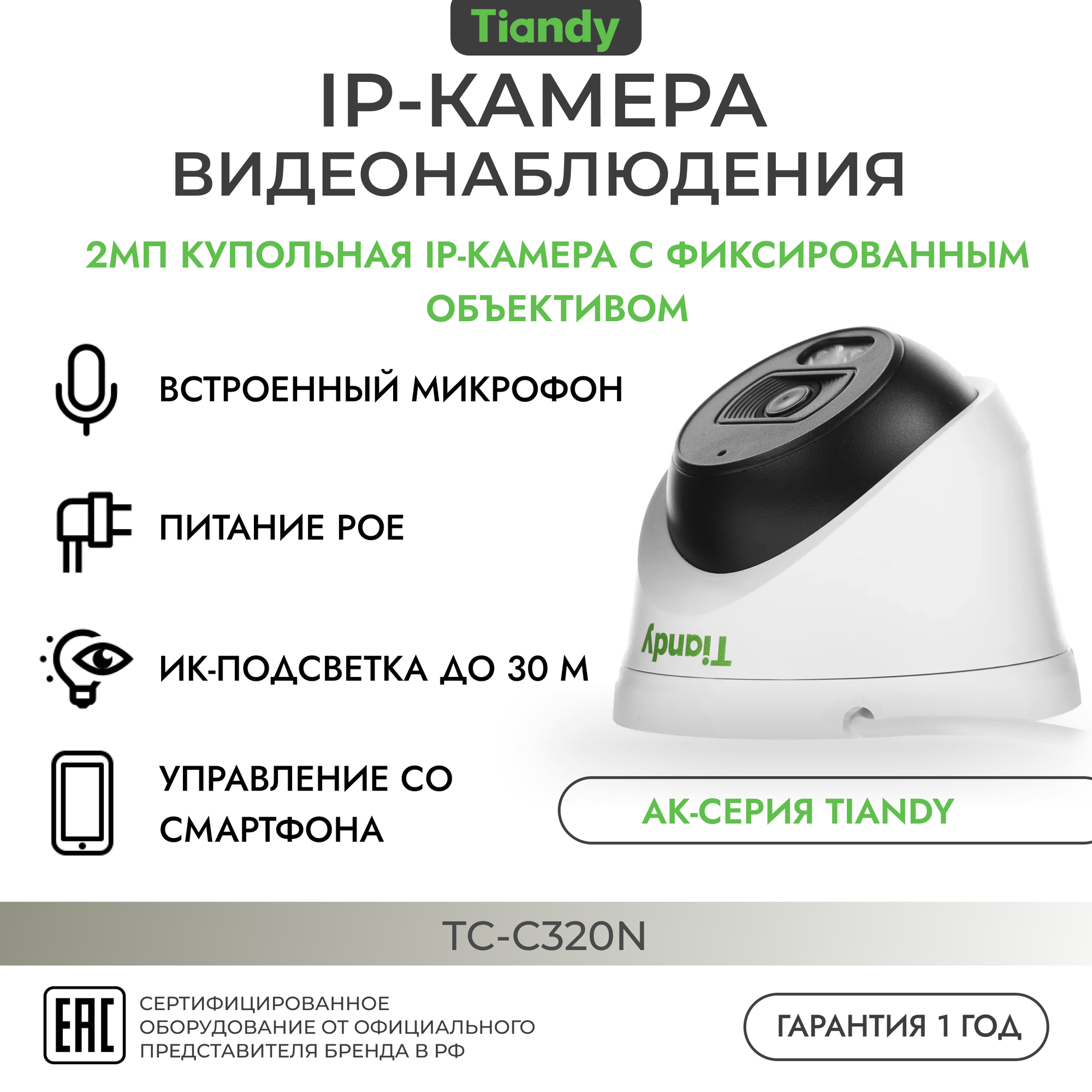 IP камера 2МП 2,8 мм TIANDY TC-C320N(I3/E/Y/2.8mm) уличная купольная фиксированная микрофон ИК CMOS PoE 1920×1080