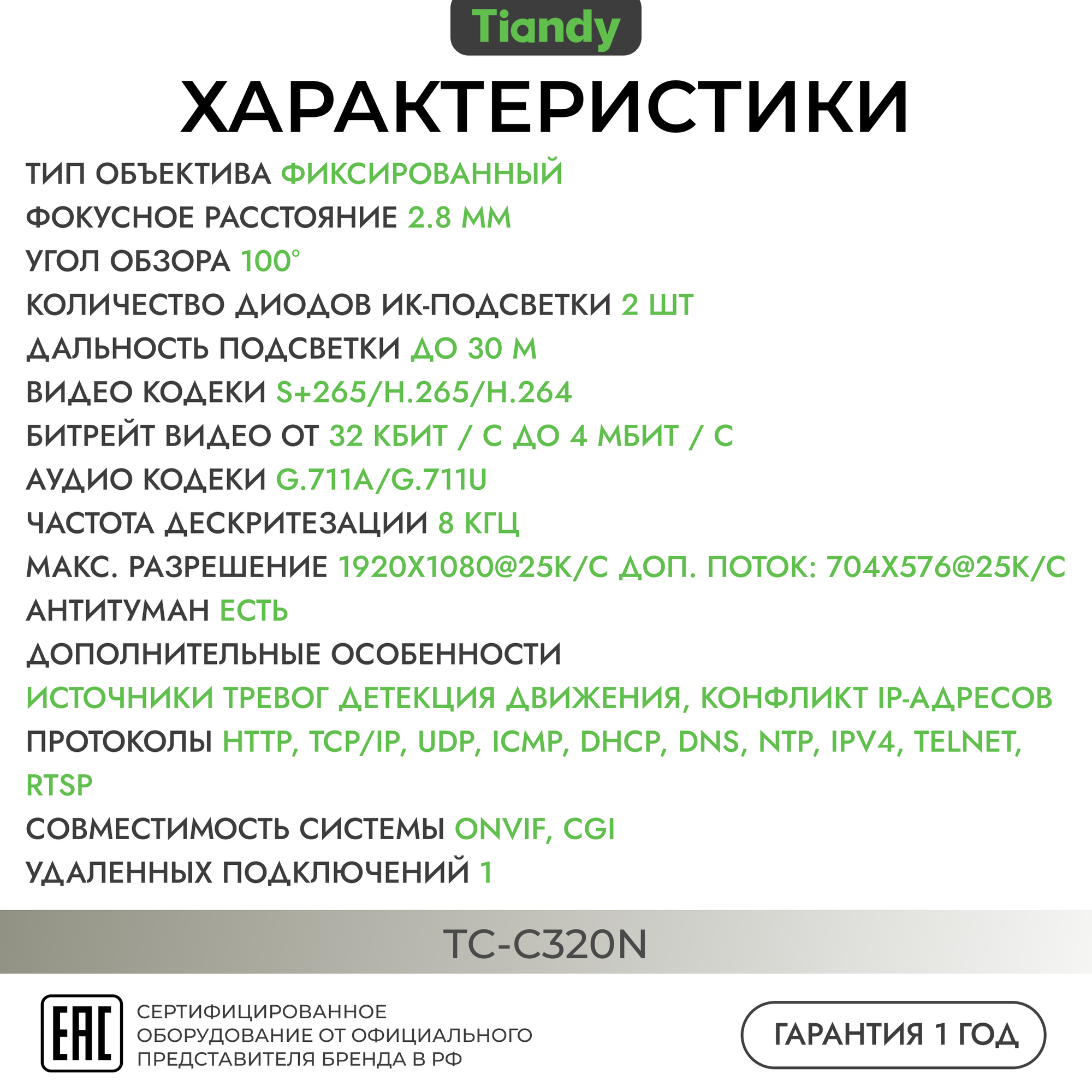 Видеокамера IP Tiandy Tc-c32xn I3/E/Y/2.8mm-V5.0
