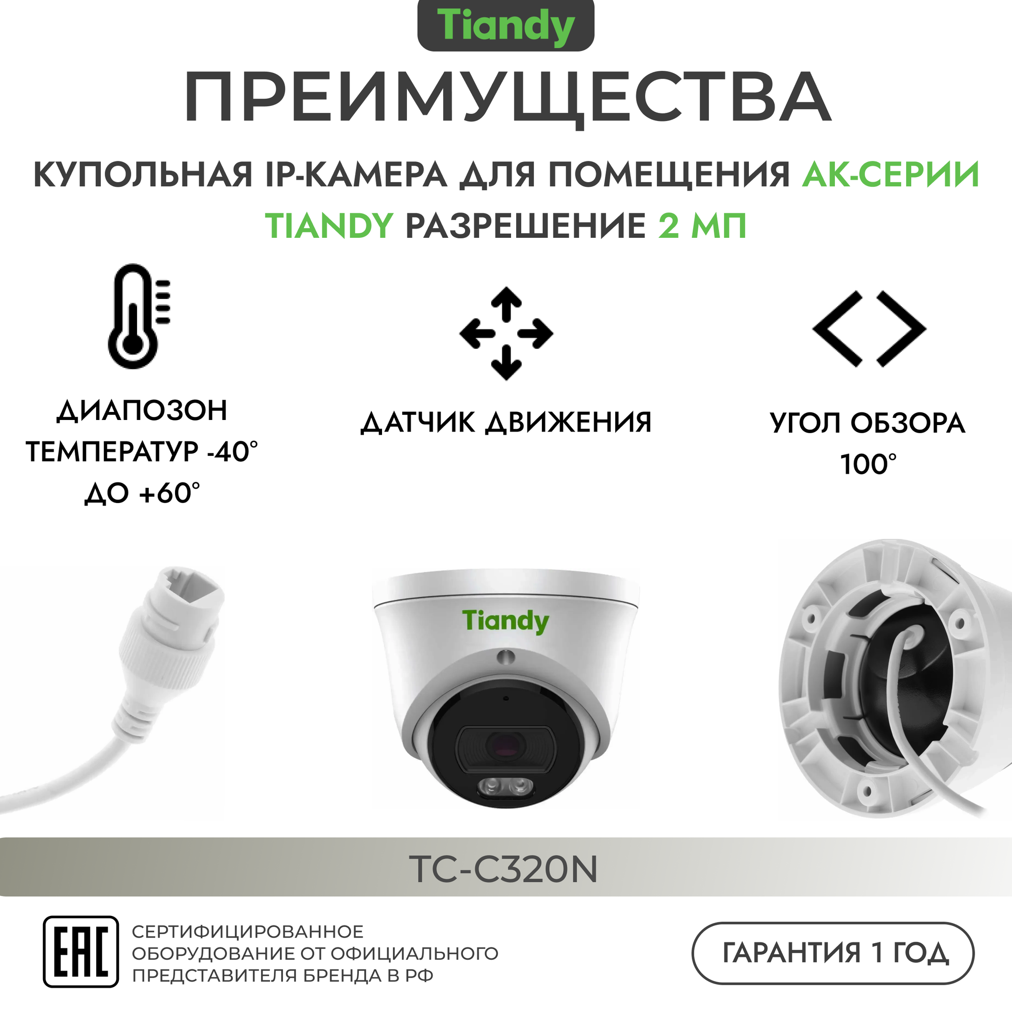 СохранитьIP-камера 2 МП внутренняя TIANDY TC-C320N I3/E/Y/2.8mm со встроенным микрофоном интересное: