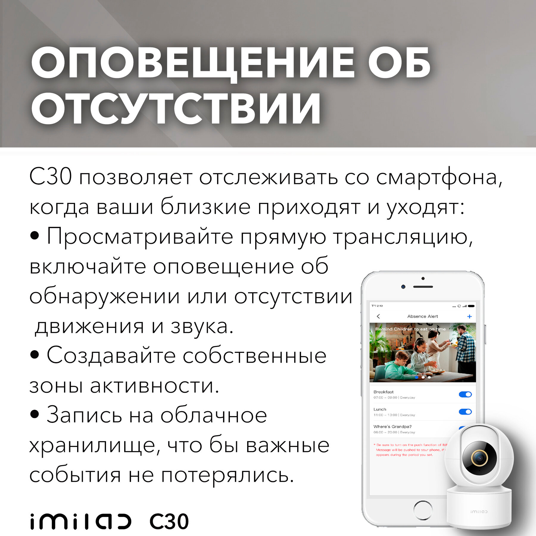 Камера видеонаблюдения wifi для дома видеоняня IMILAB Home Security Camera C30 (CMSXJ21E) интересное: