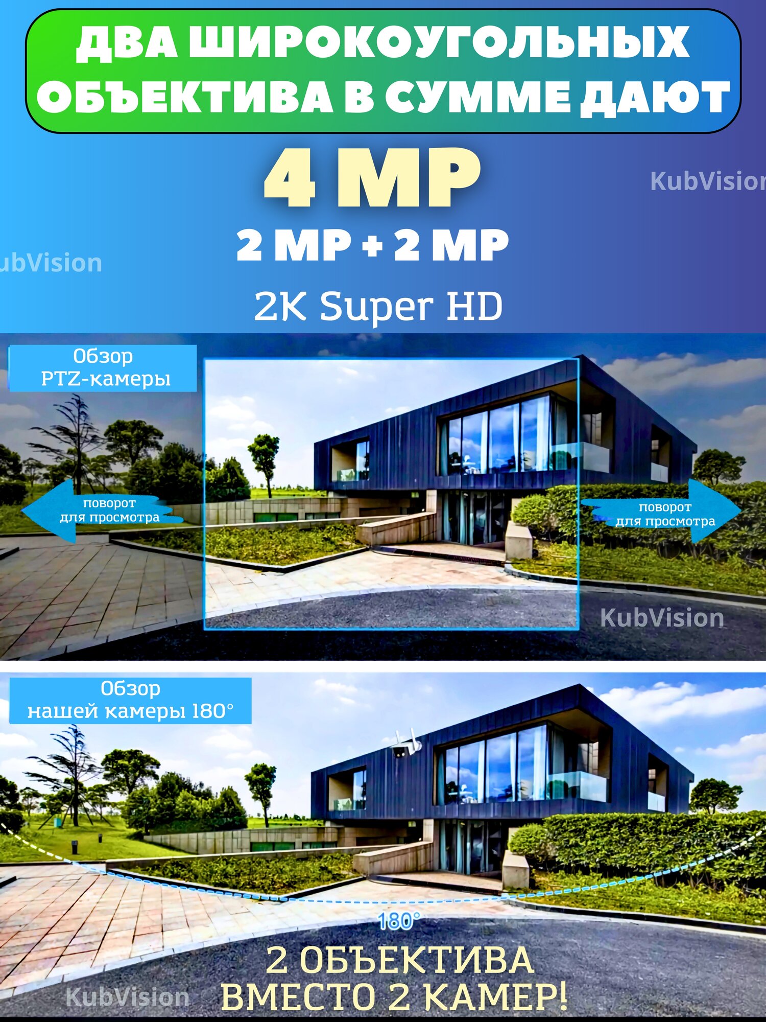 Панорамная уличная камера видеонаблюдения с двумя объективами, 180 градусов, WI-FI 4 МП с двойным объективом, двойная камера интересное: