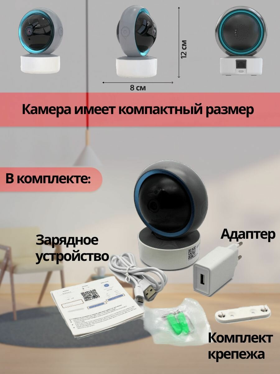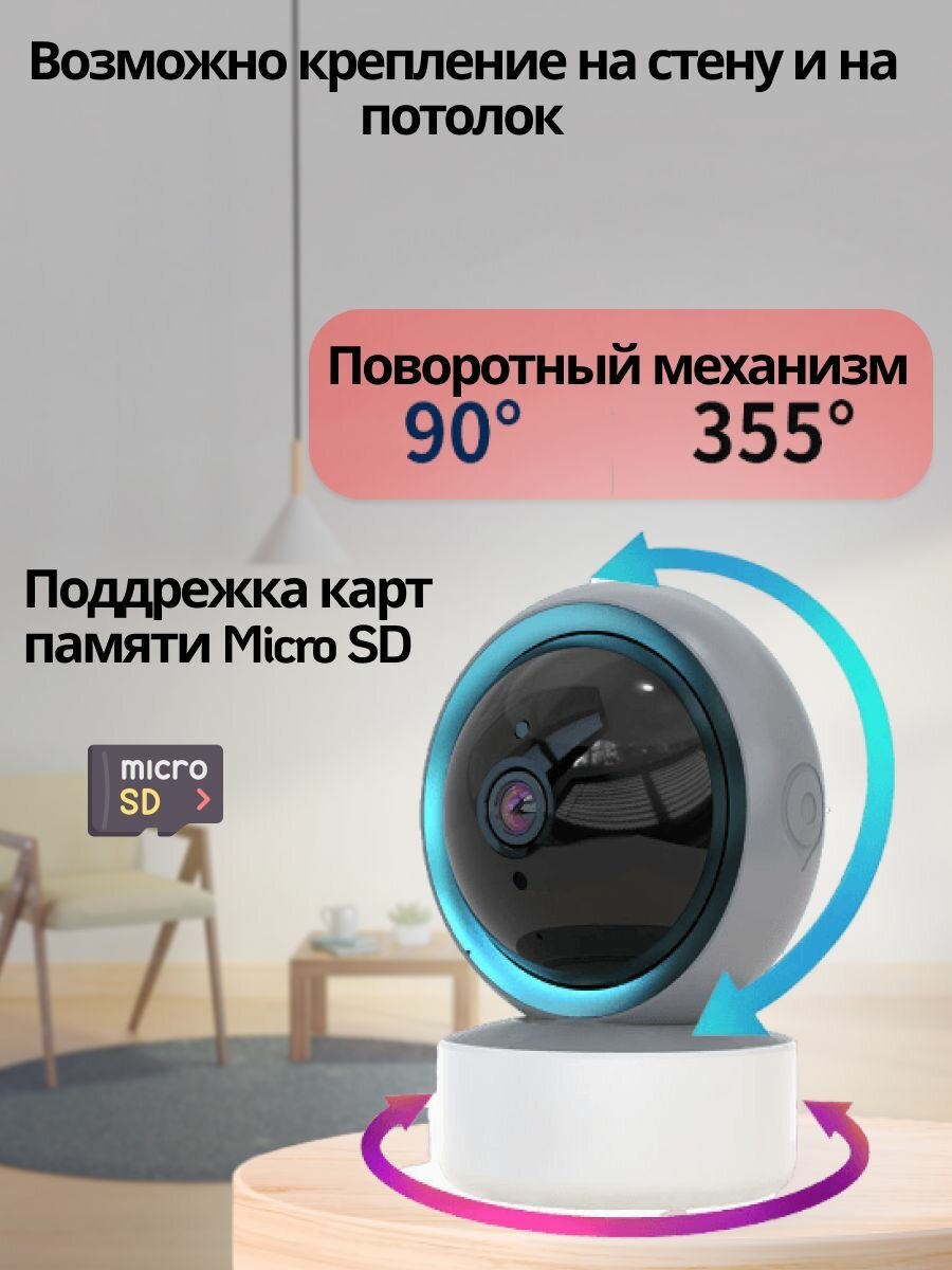IP-камера видеонаблюдения Wi-Fi для дома с обзором 360 градусов белая