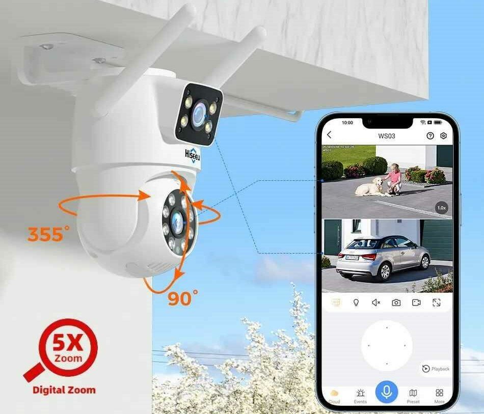 Купить Комплект камер уличного видеонаблюдения 10-канального (беспроводной) Wi-Fi 3+3MP 4 IP двойные камеры с блоком питания (У)