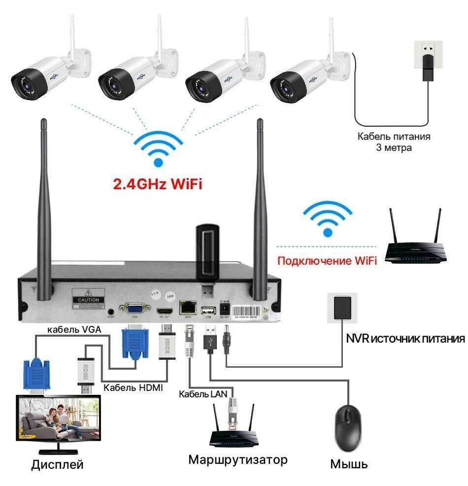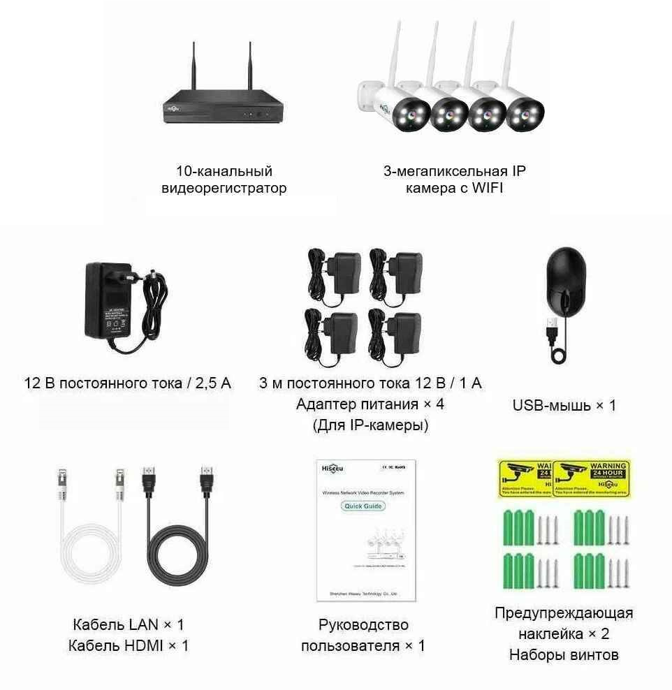 Комплект камер уличного видеонаблюдения 10-канального (беспроводной) Wi-Fi, NVR Kit, 3MP, 4 IP камеры с блоком питания, без жесткого диска (У) интересное: