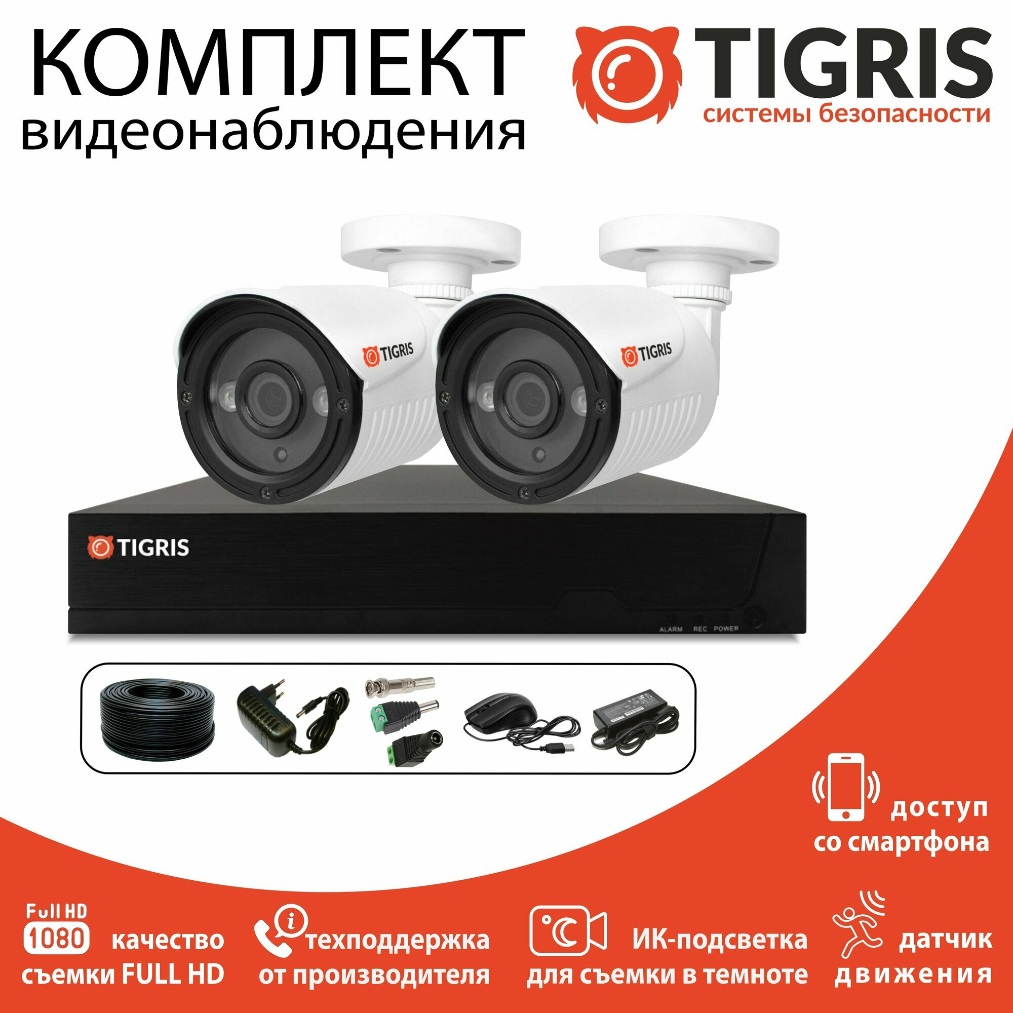 Готовый комплект видеонаблюдения FULL HD на 2 уличные камеры интересное: