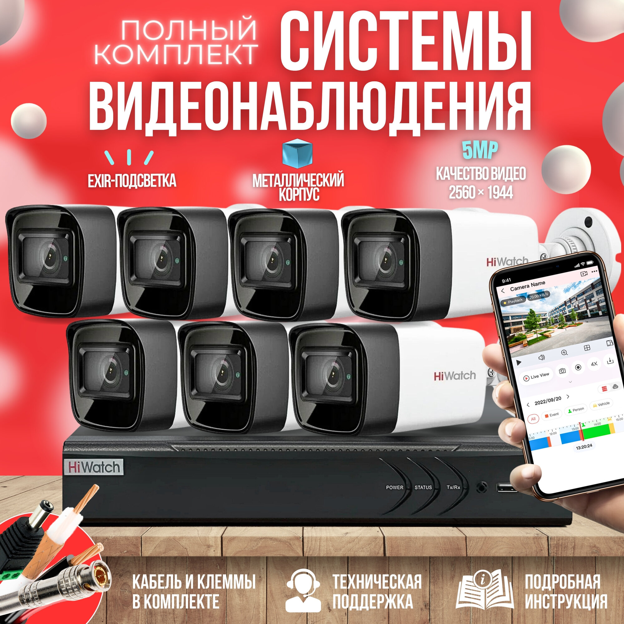 Купить Готовый комплект AHD видеонаблюдения 7 камер 5MP HiWatch KIT-A75HD