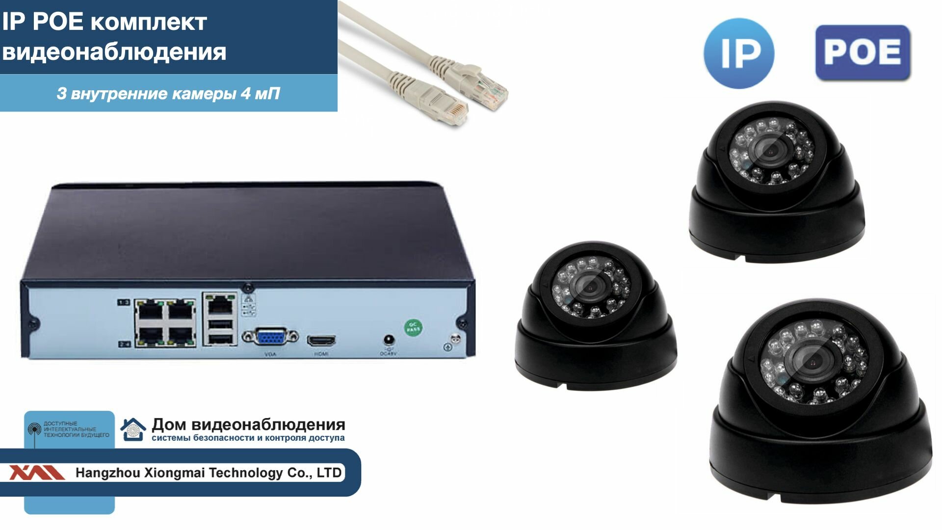 Полный IP POE комплект видеонаблюдения на 3 камеры (KIT3IPPOE300B4MP-2) интересное: