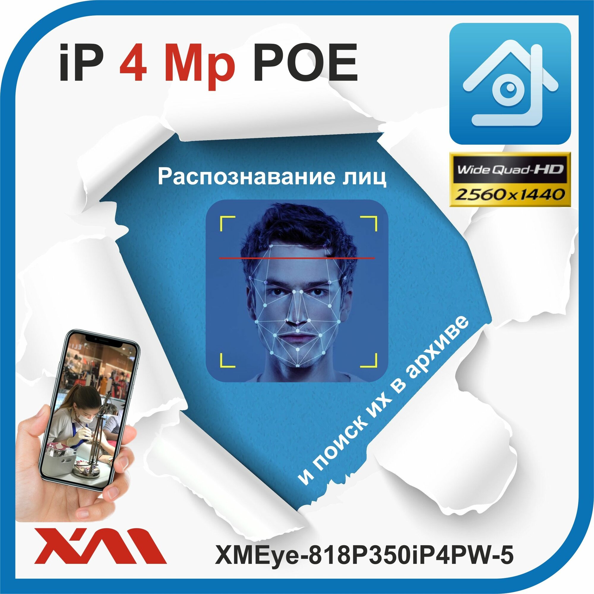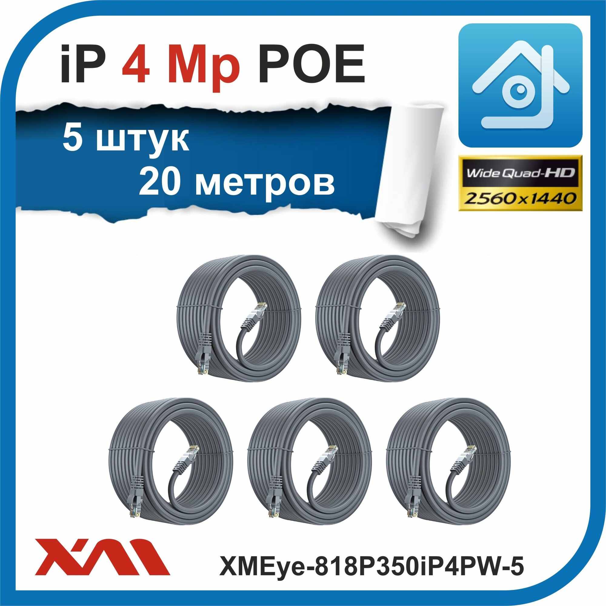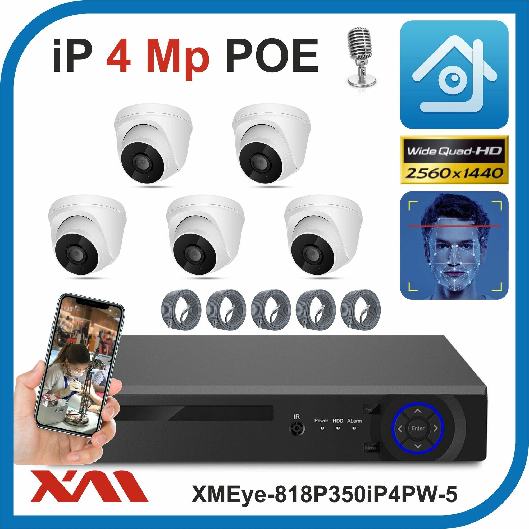 Купить Комплект видеонаблюдения IP POE на 5 камер с микрофонами, 4 Мегапикселя. Xmeye-818P350iP4PW-5-POE.
