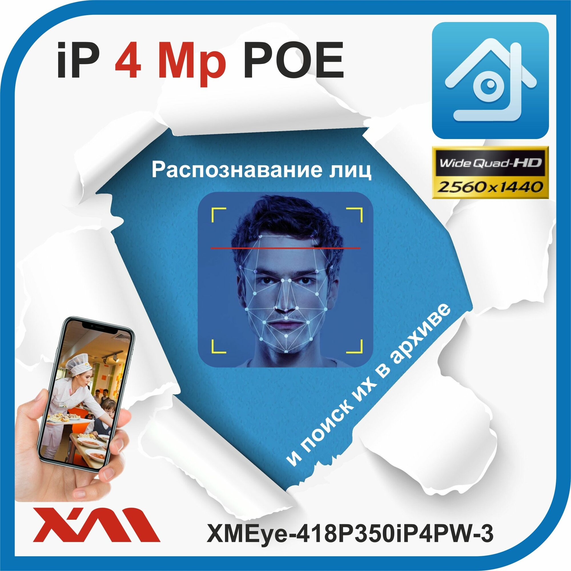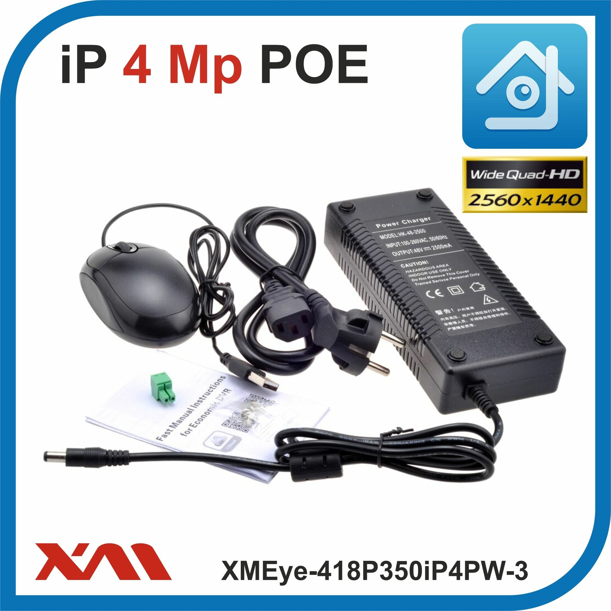 Комплект видеонаблюдения IP POE на 4 камеры с микрофоном, 4 Мегапикселя. Xmeye-418P350iP4PW-4-POE.