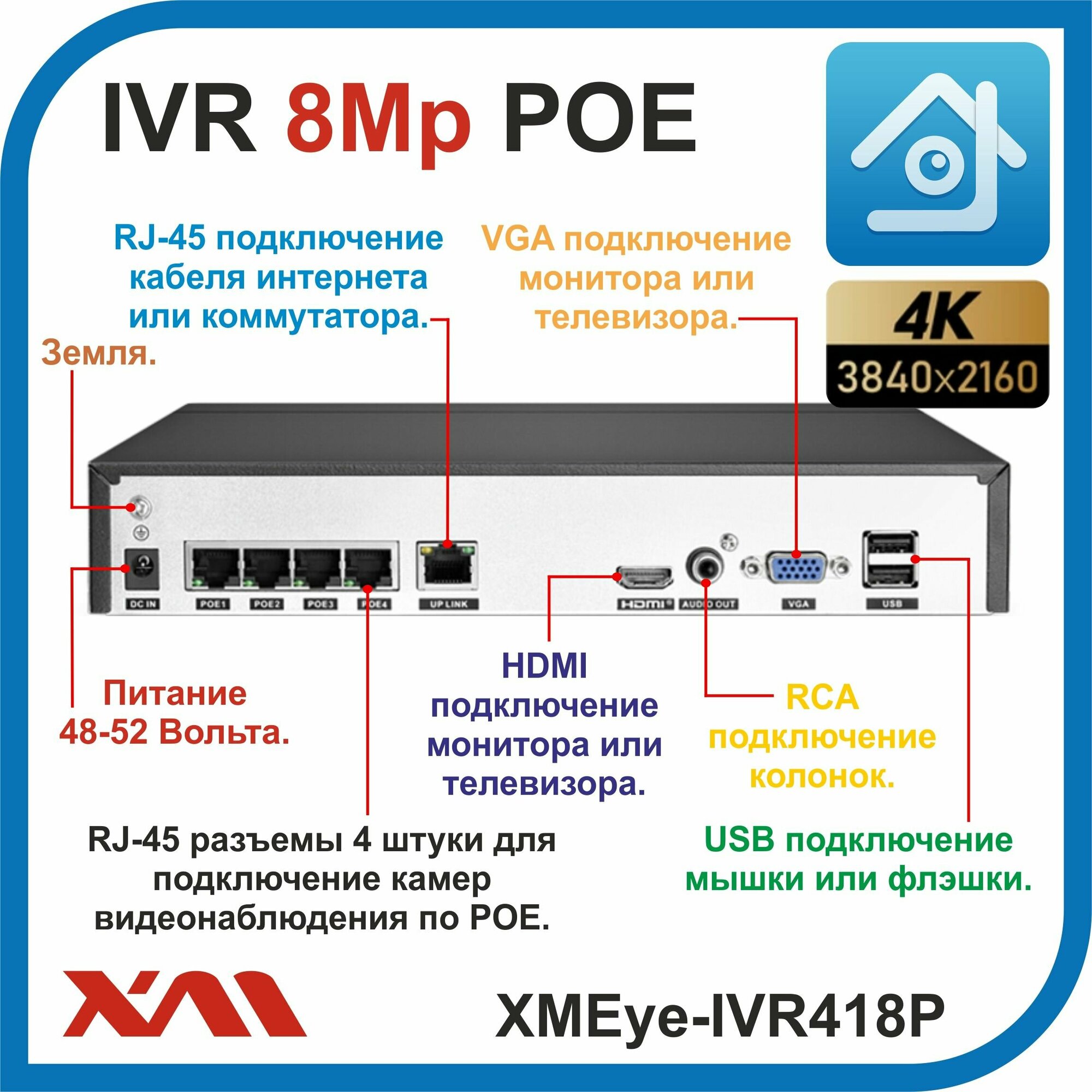Комплект видеонаблюдения IP POE на 8 камер с микрофонами, 4 Мегапикселя. Xmeye-818P350iP4PW-8-POE.