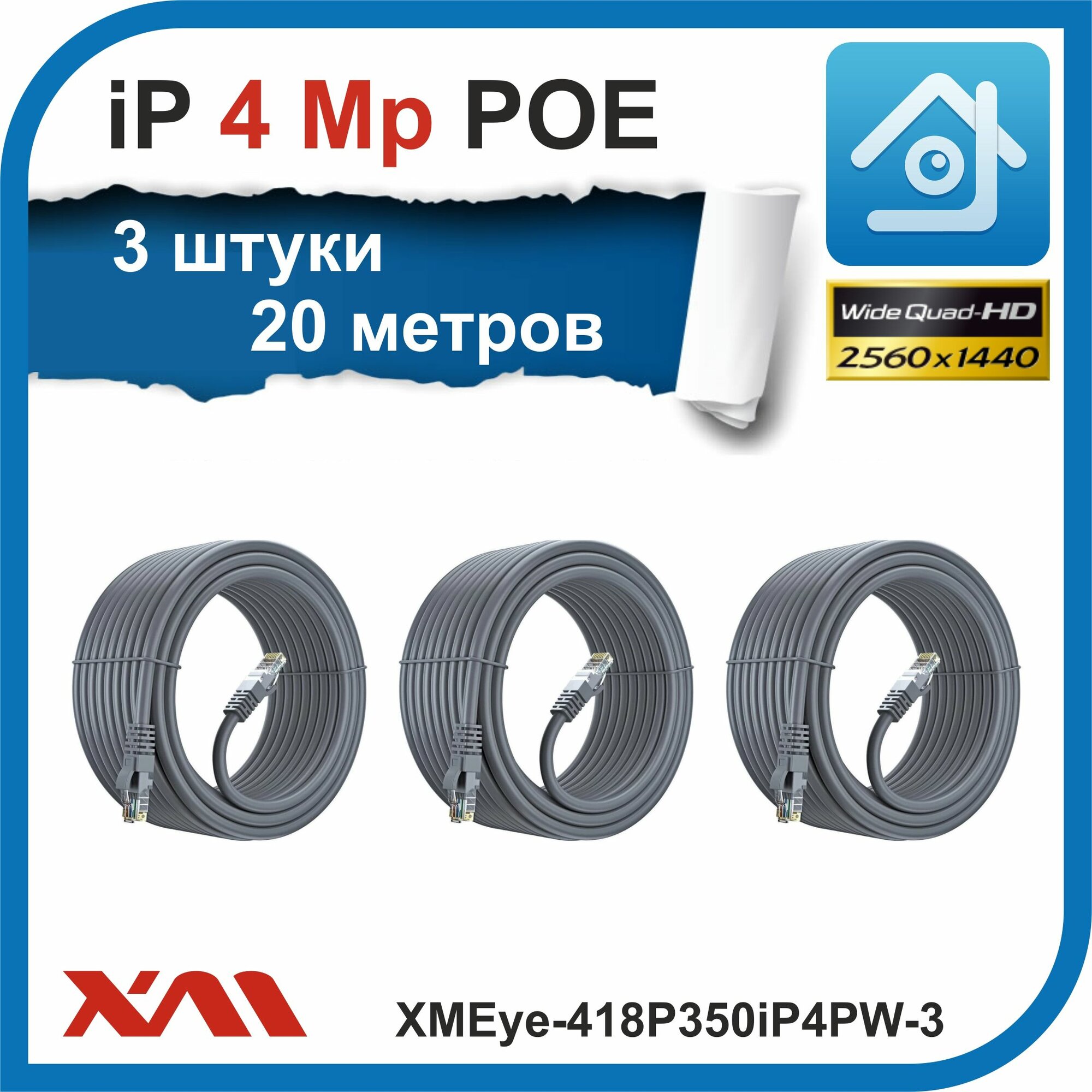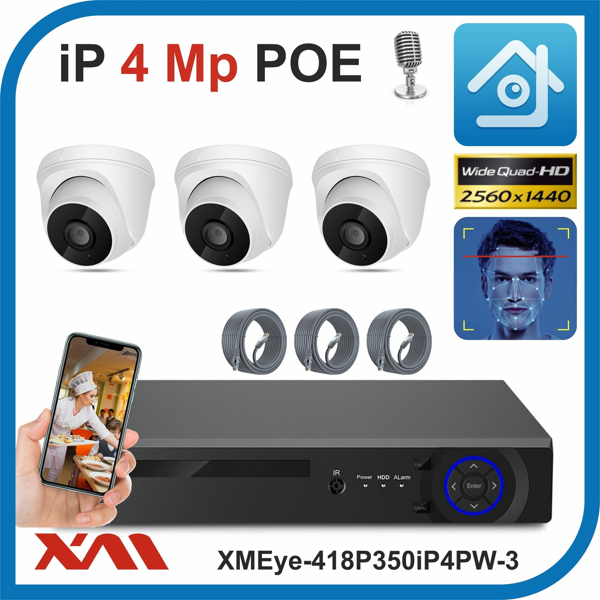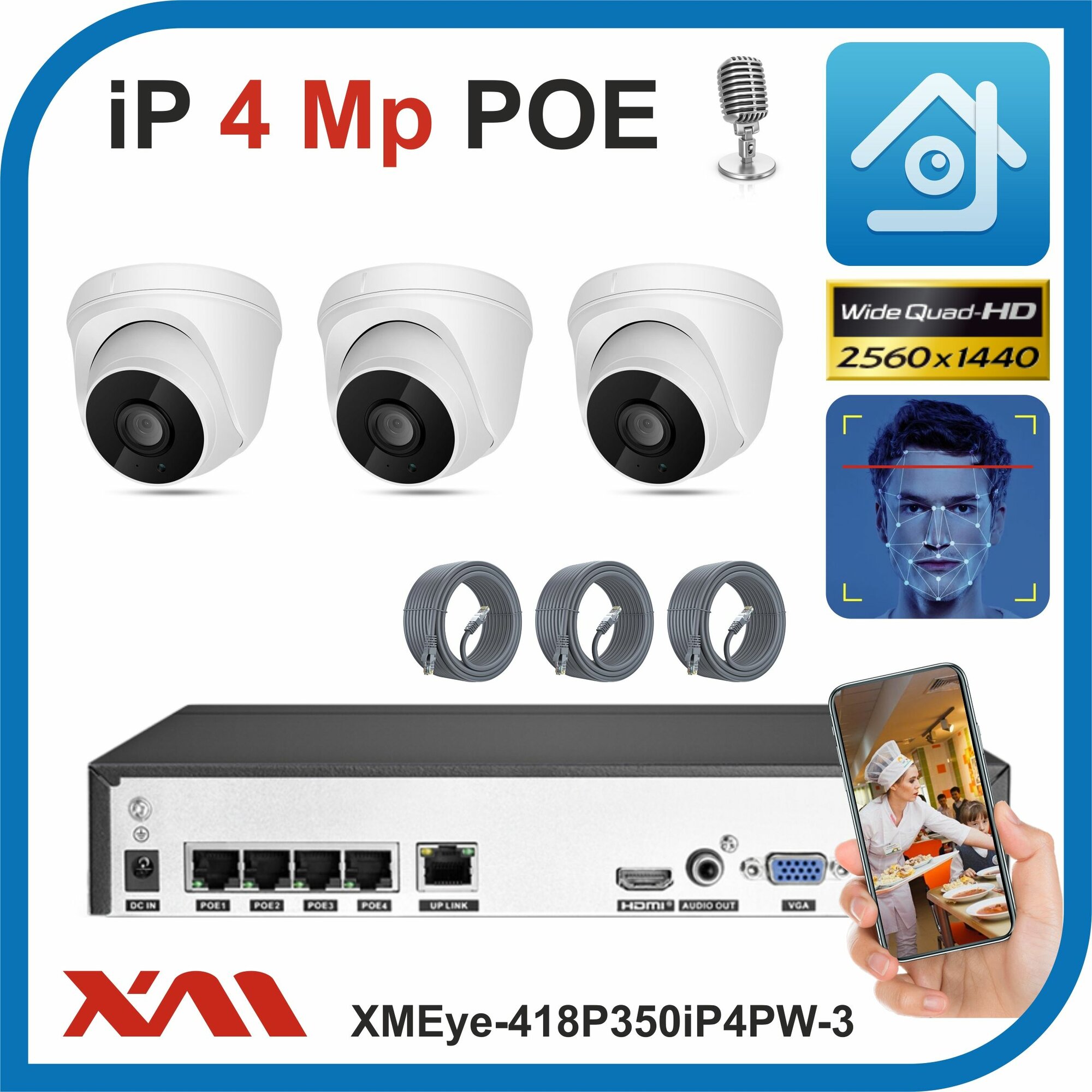 Купить Комплект видеонаблюдения IP POE на 3 камеры с микрофоном, 4 Мегапикселя. Xmeye-418P350iP4PW-3-POE.