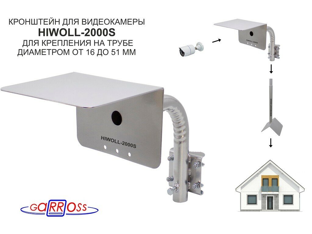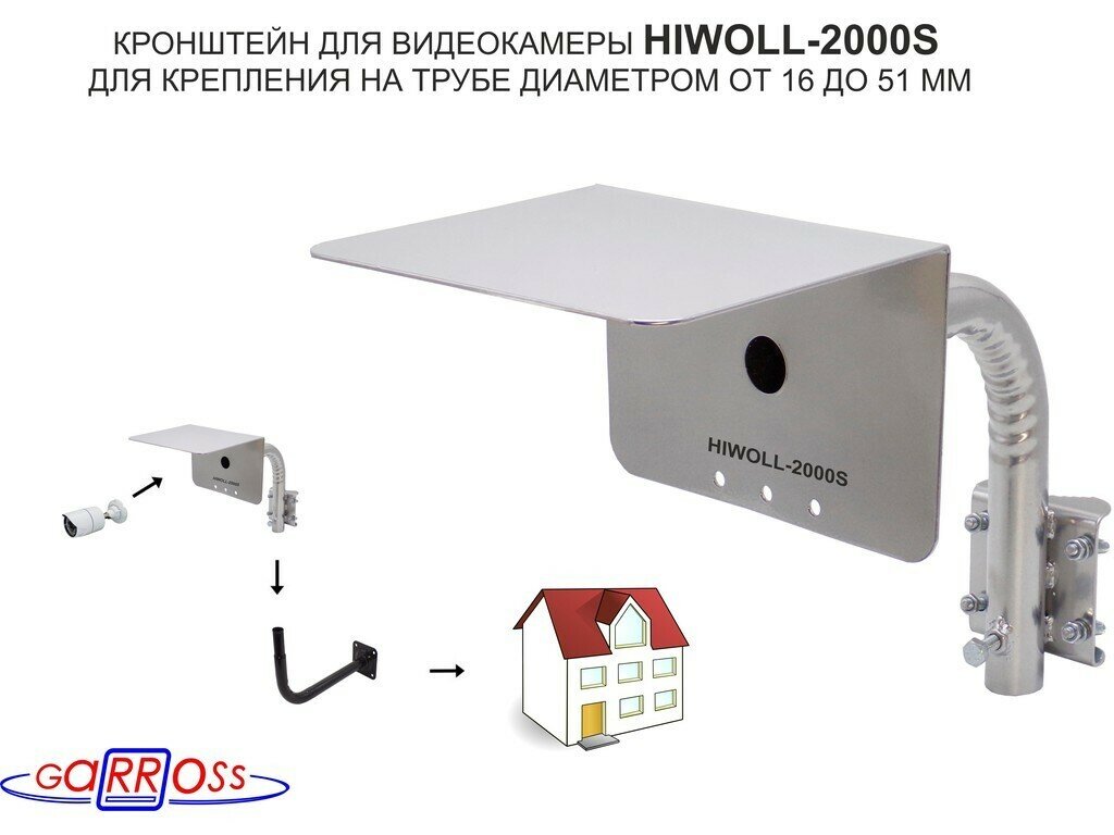 Кронштейн "HIWOLL-2000S" серебристый с хомутами и козырьком на мачту для камеры и прожектора, 0,25м интересное: