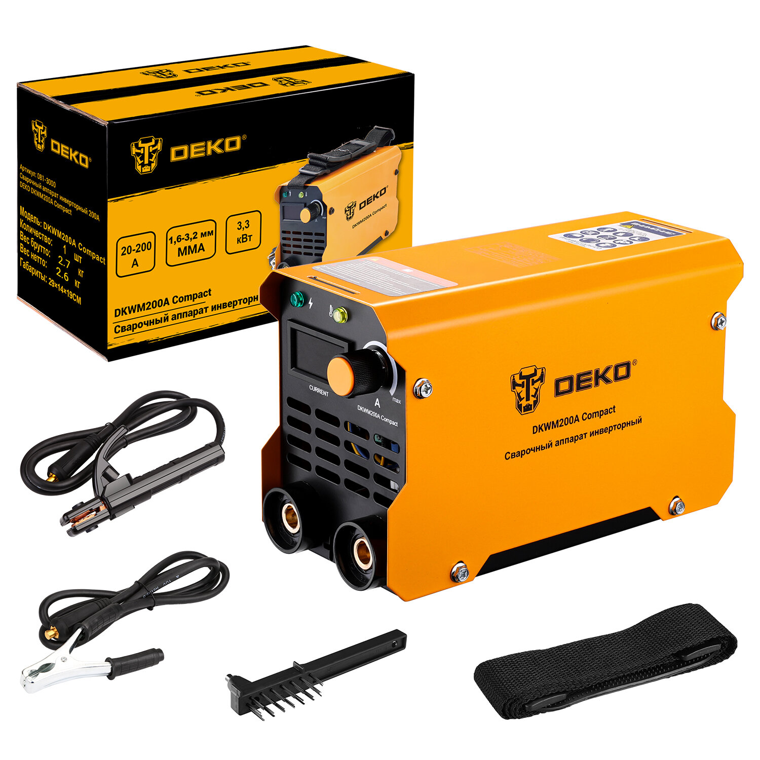 Сварочный аппарат инверторный 200A DEKO DKWM200A Compact, ММА, 3300Вт
