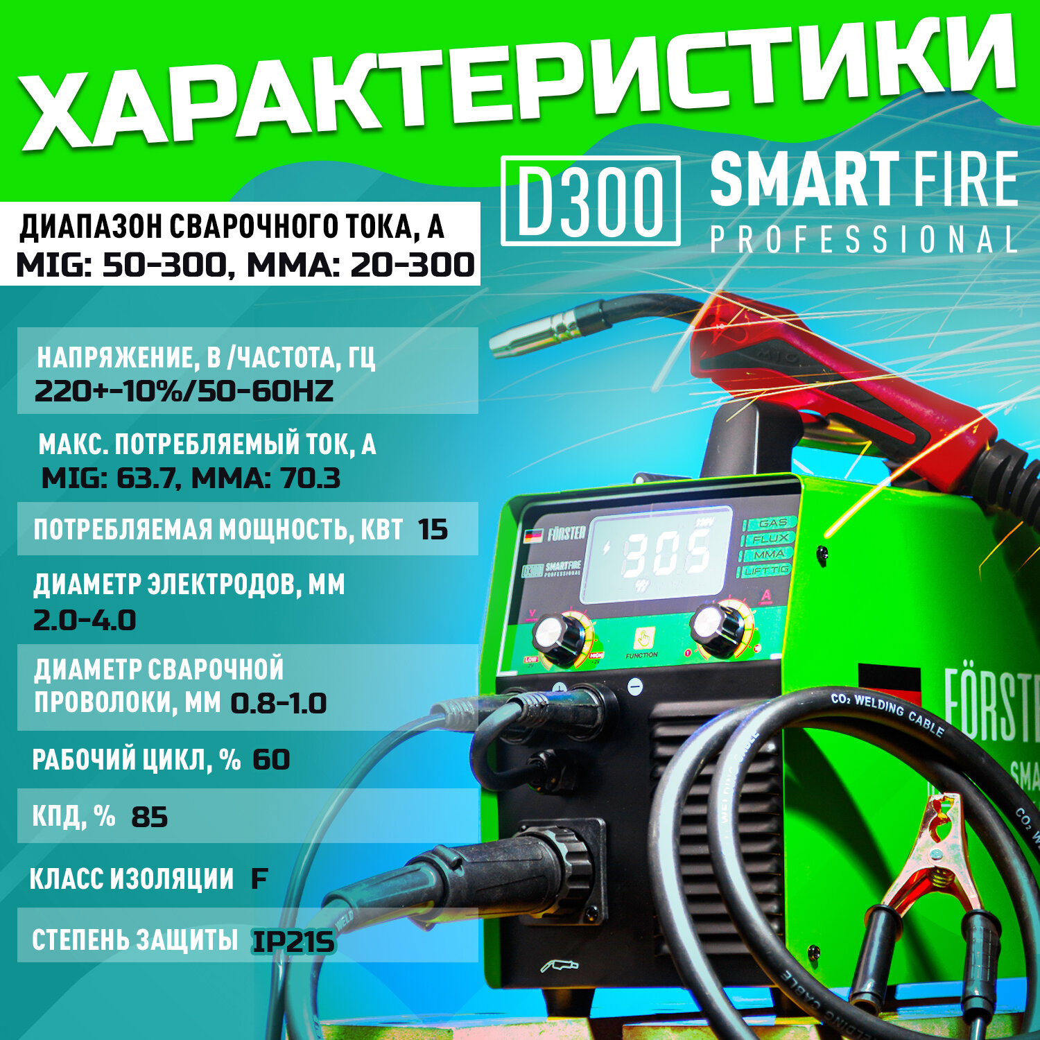 Сварочный аппарат полуавтомат FORSTER SmartFire D300/инвертор для сварки электродом и проволокой/ с газом и без газа интересное: