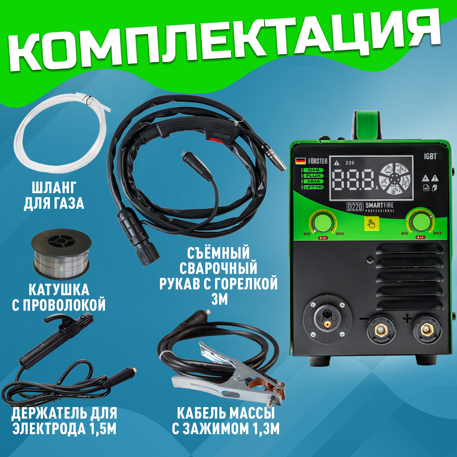 Сварочный инверторный полуавтомат FORSTER SmartFire D220/Полуавтоматический инвертор для сварки проволокой и электродом/ С газом и без газа интересное: