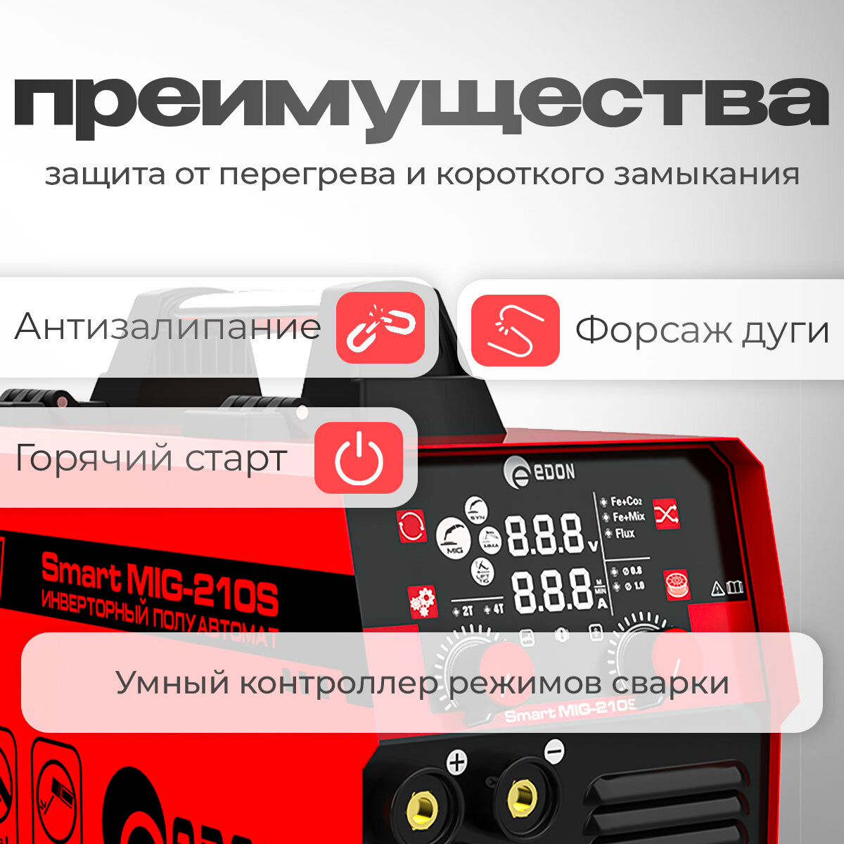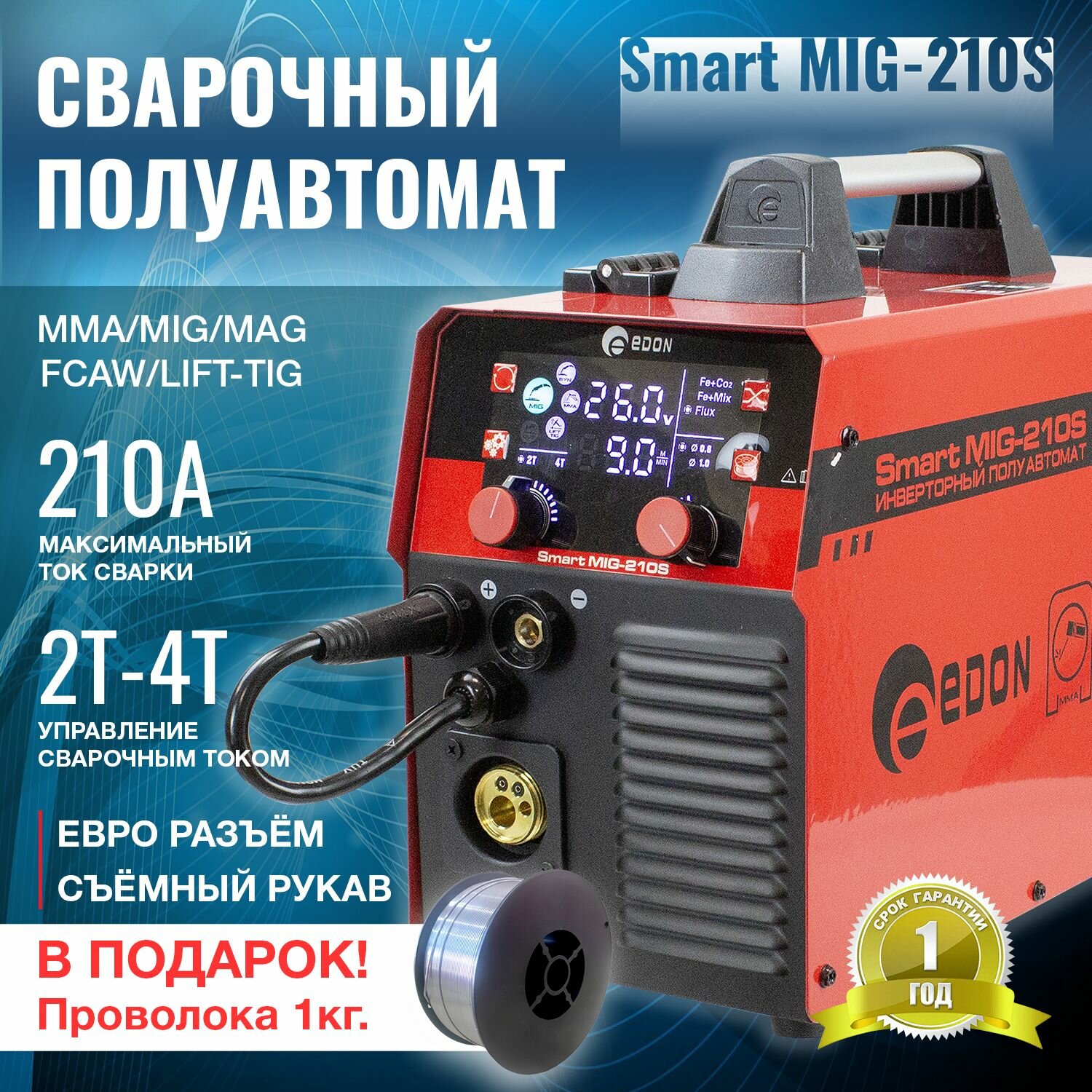 Сварочный полуавтомат инверторный Edon Smart MIG-210S интересное: