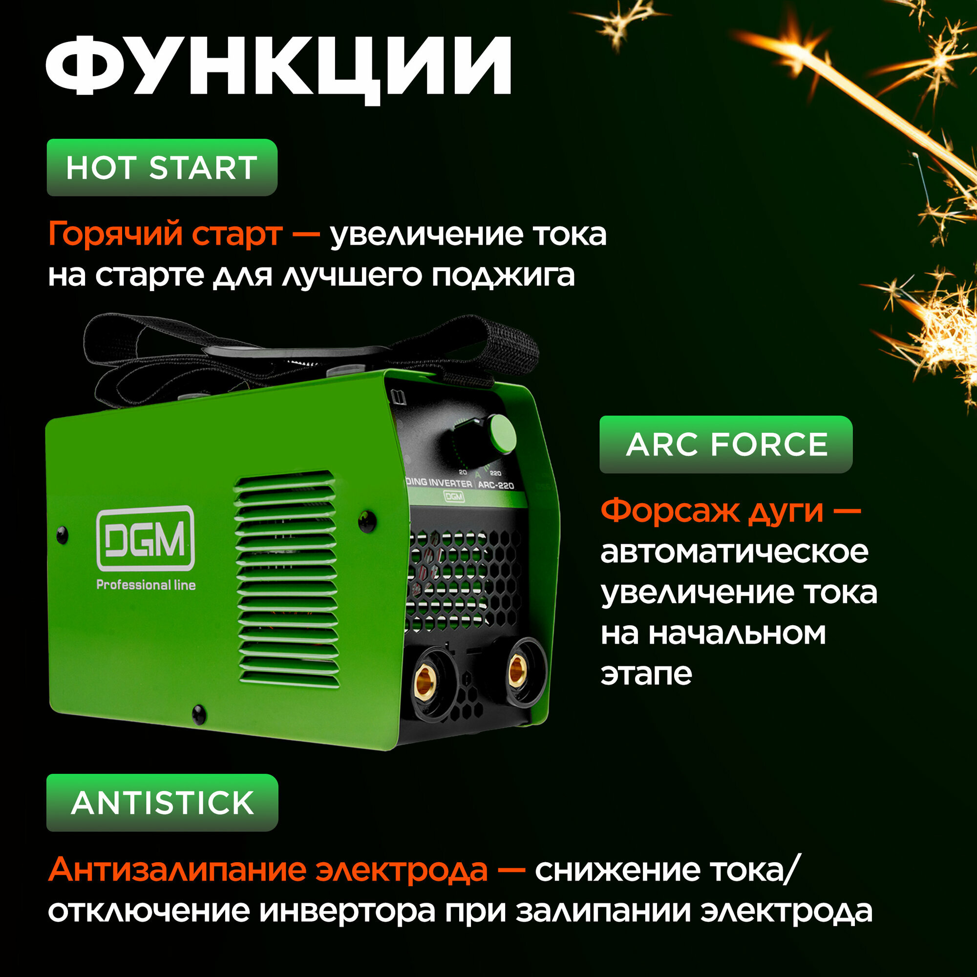 Инвертор сварочный DGM ARC-220 (DG5821-6) интересное: