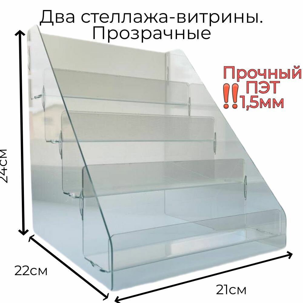 2 горки из оргстекла/ Прозрачная витрина-стеллаж настольный торговый/выставочный , 4 полки , общий размер 24х22х21 см интересное: