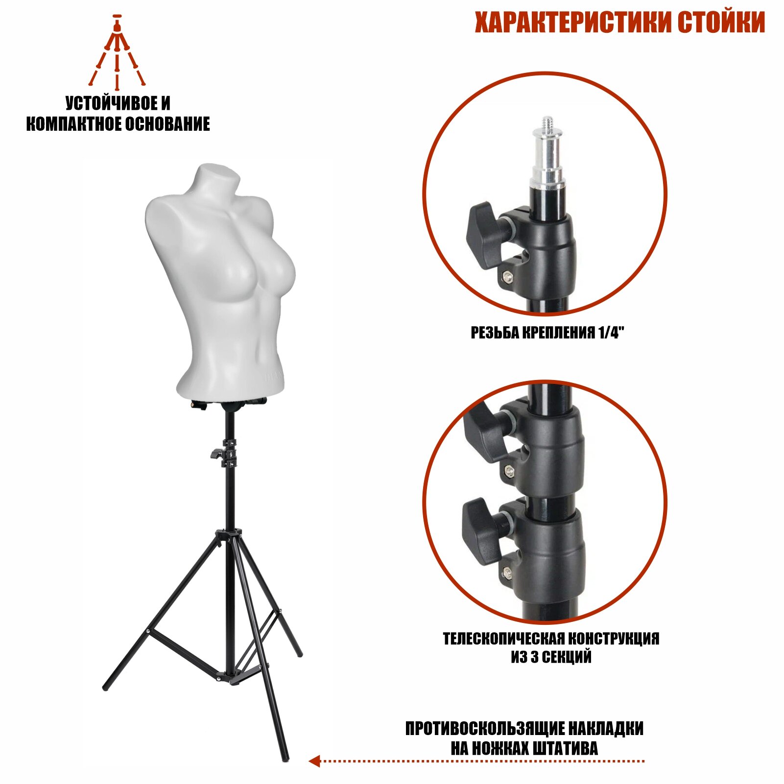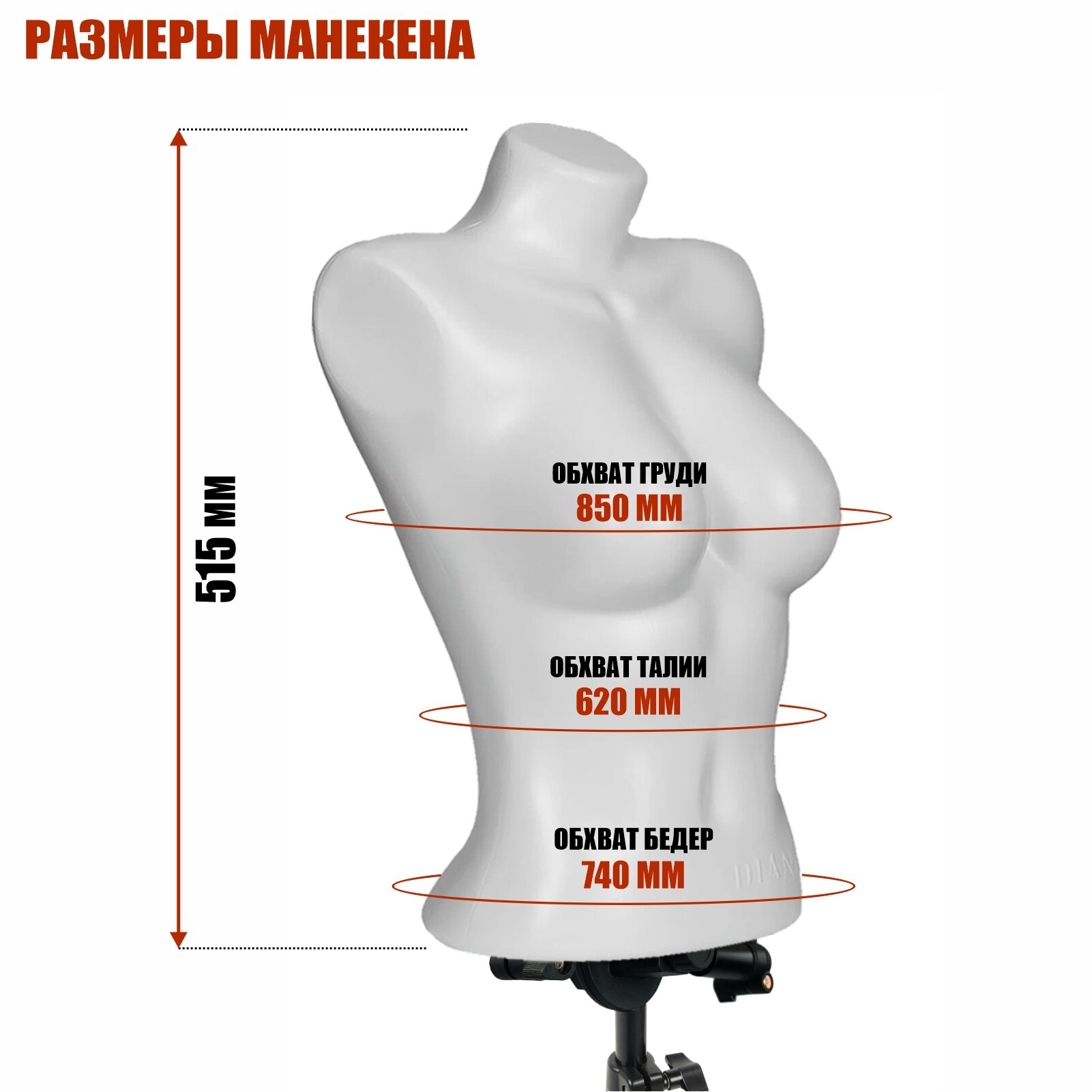 Манекен, торс женский белый без рук на напольном штативе JBH интересное: