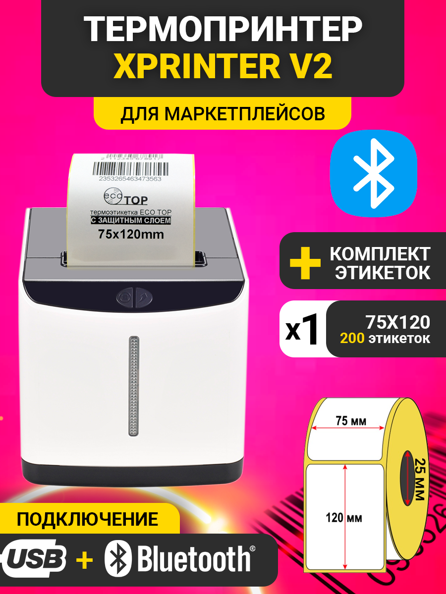 Купить Термопринтер этикеток v2 Bluetooth+USB + термоэтикетки 75х120