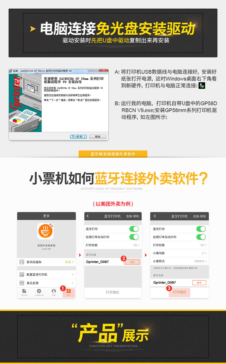 Термопринтер Jiabo 58MBIII, Bluetooth, для супермаркета интересное: