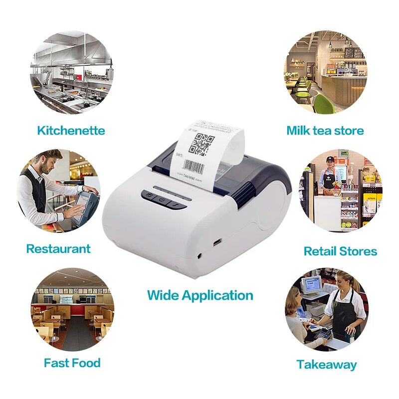 Купить Портативный мини-принтер для печати этикеток 58 мм 2 в 1 POS-принтер