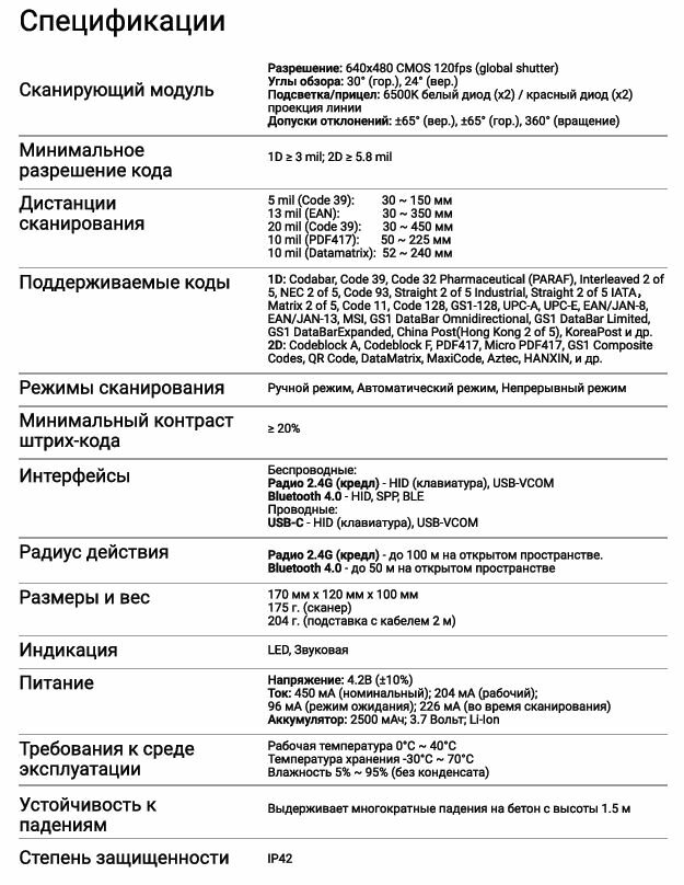 | Комплектация | Сканер, паспорт, упаковка |
