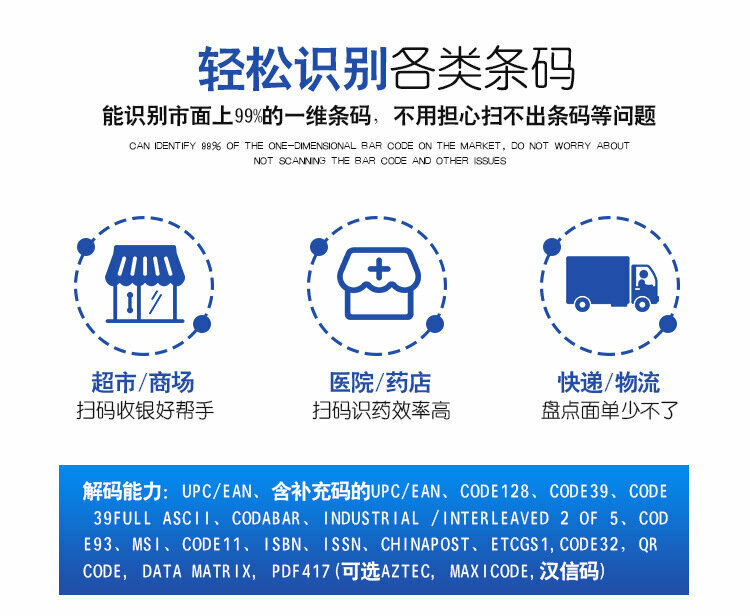 | Вид декодируемых кодов | 1D |