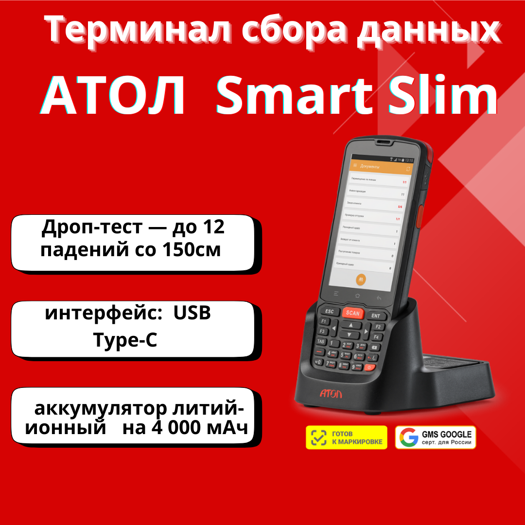 Терминал сбора данных АТОЛ Smart.Slim базовый (4", Android 7.0, MTK MT6580, 1Gb/8Gb, 2D E3, Wi-Fi, B интересное: