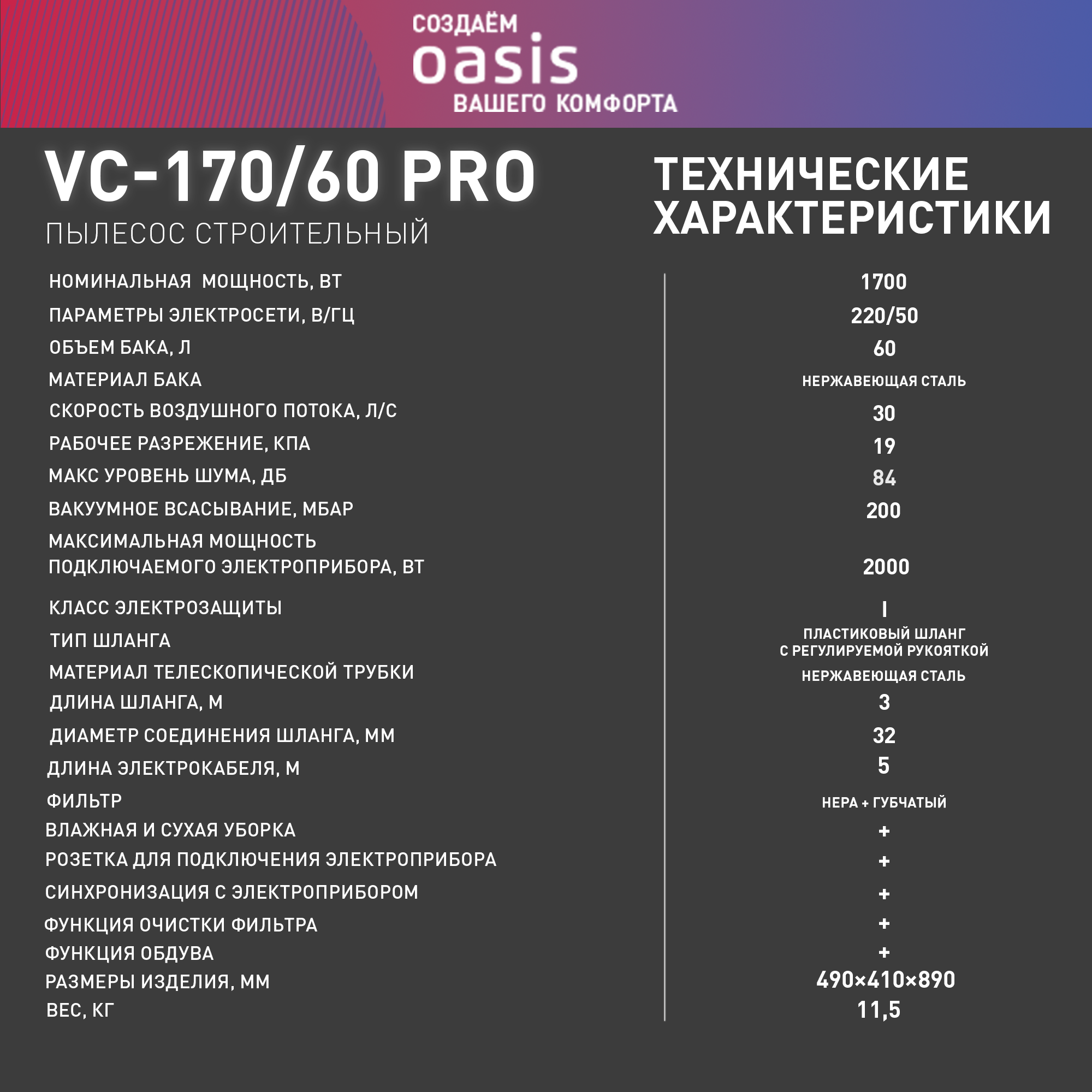 Ниже Вы можете прочитать отзывы на пылесос строительный oasis vc-170/60 pro, ознакомится с подробными характеристиками, посмотреть интересные обзоры и фотографии на пылесос строительный oasis vc-170/60 pro.