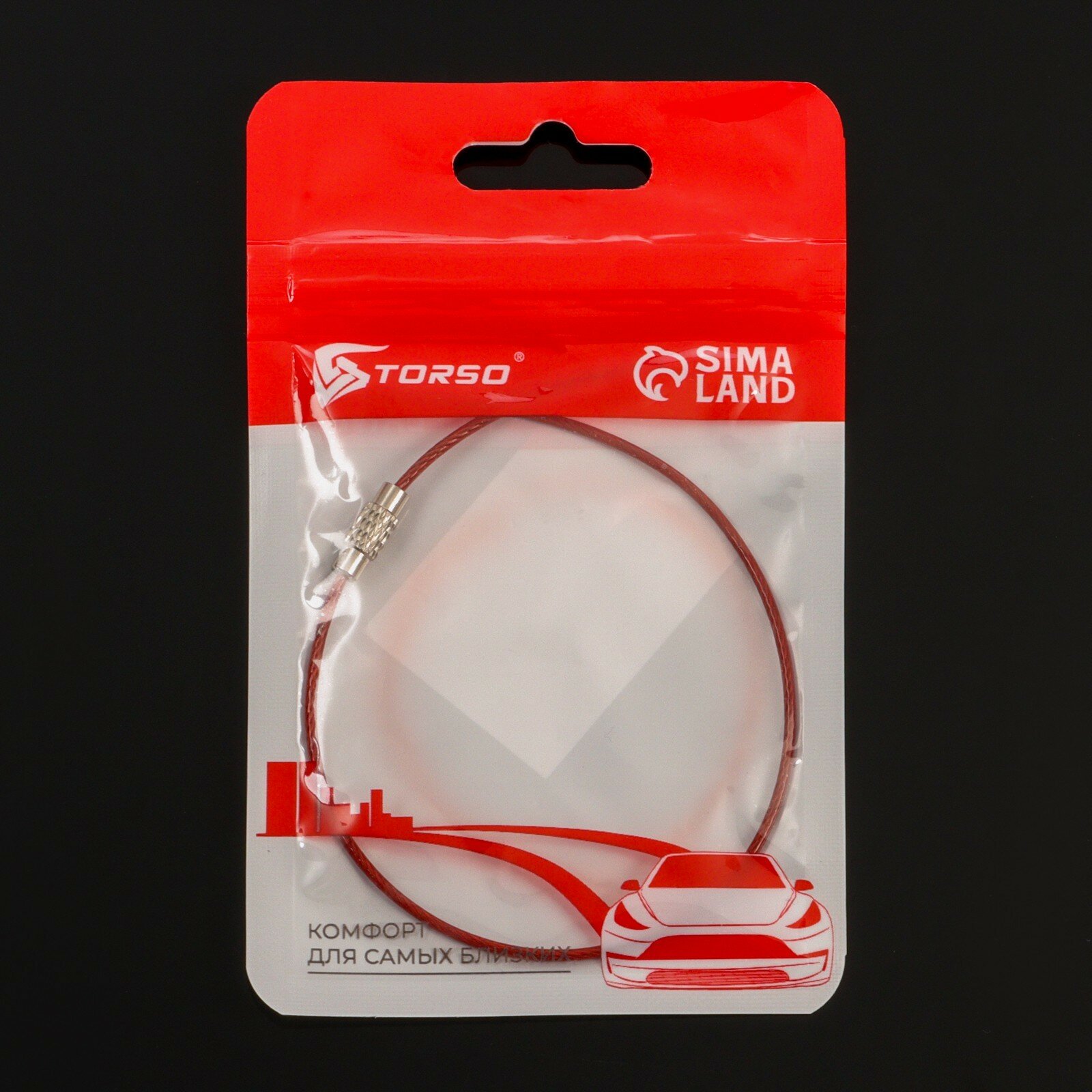 Брелок для ключей TORSO, стальной трос, 25 см, красный интересное: