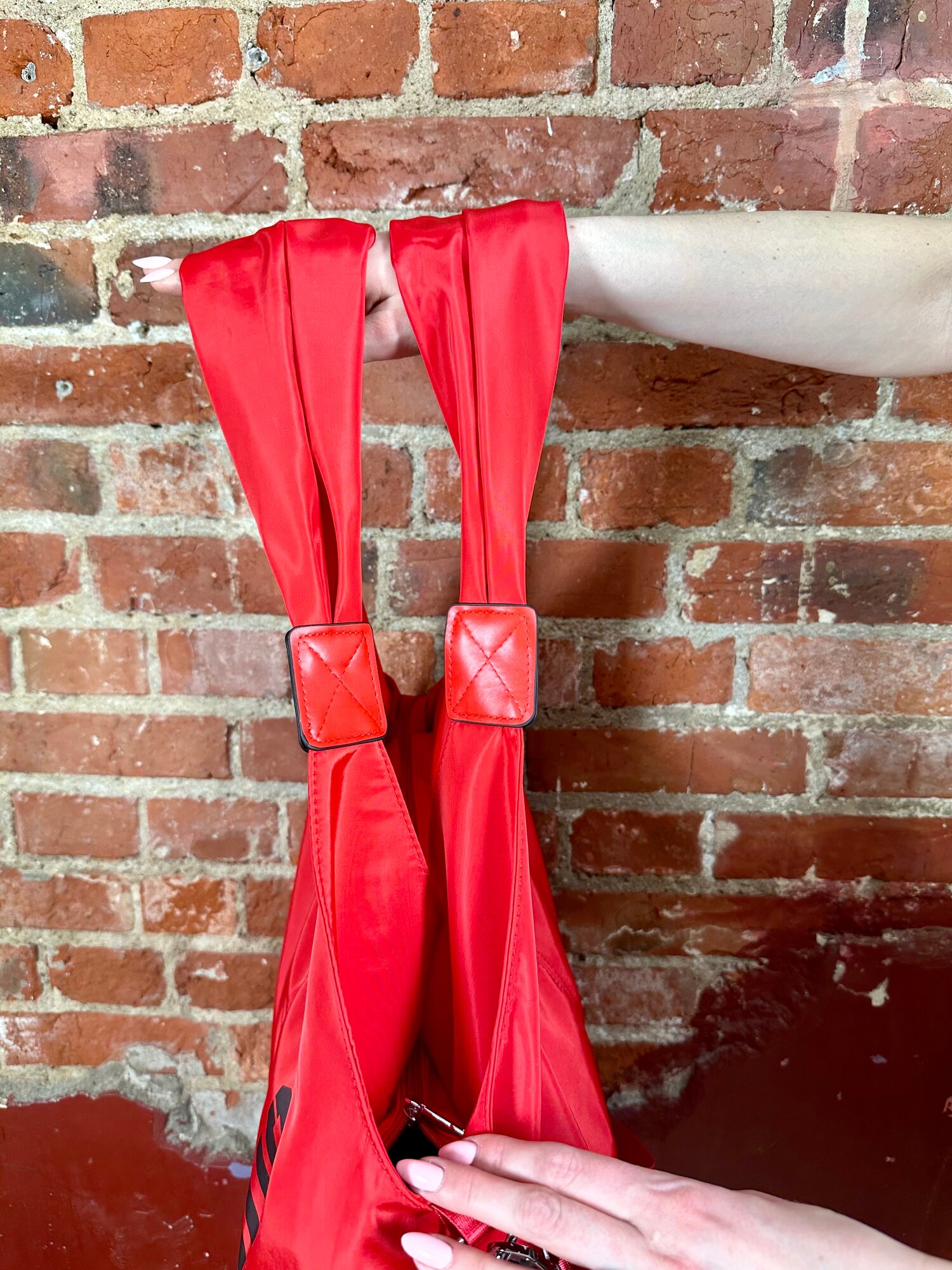 Купить Сумка дорожная TOUCH плотная две ручки, широкий длинный ремень ярко-красная