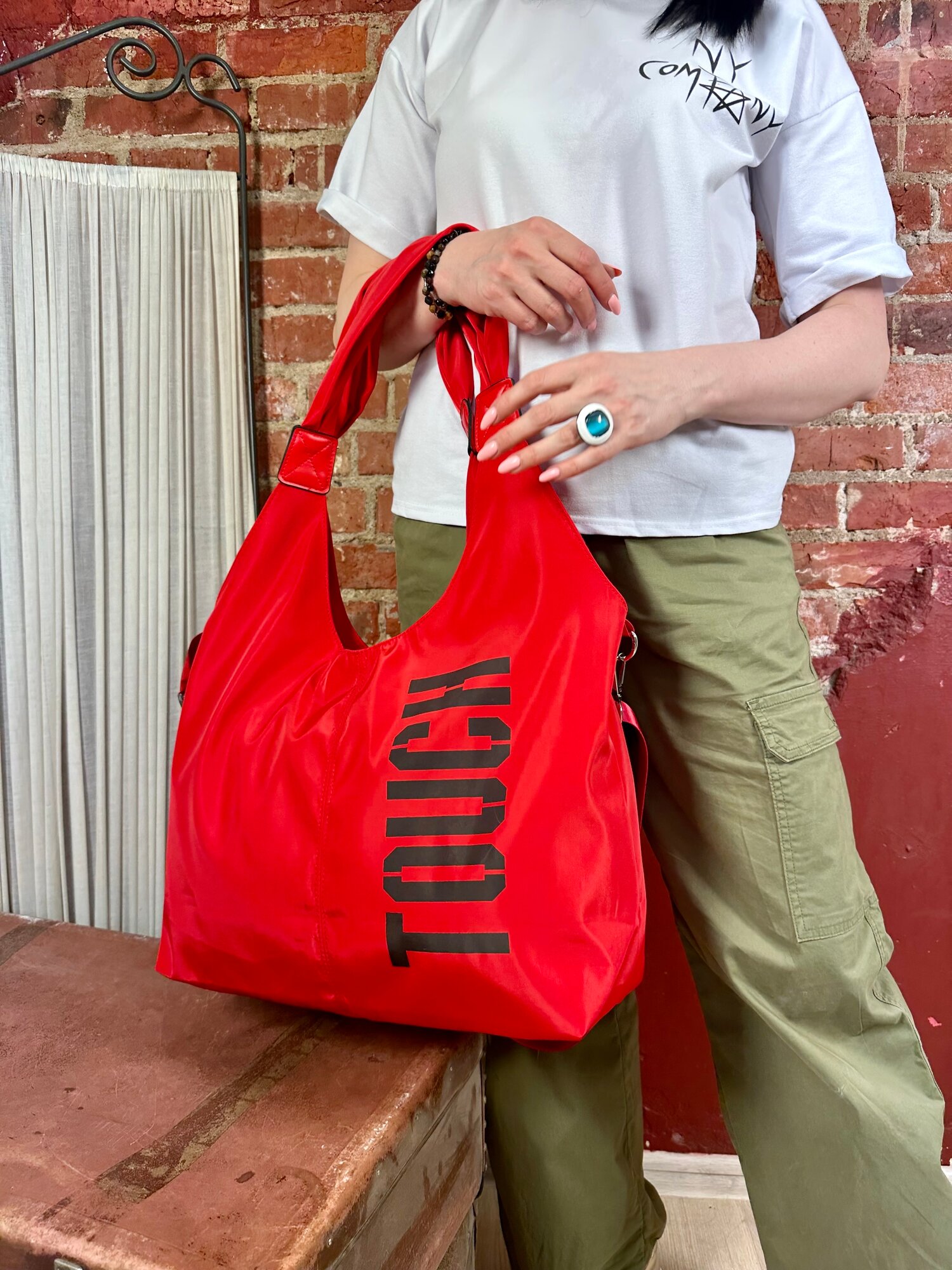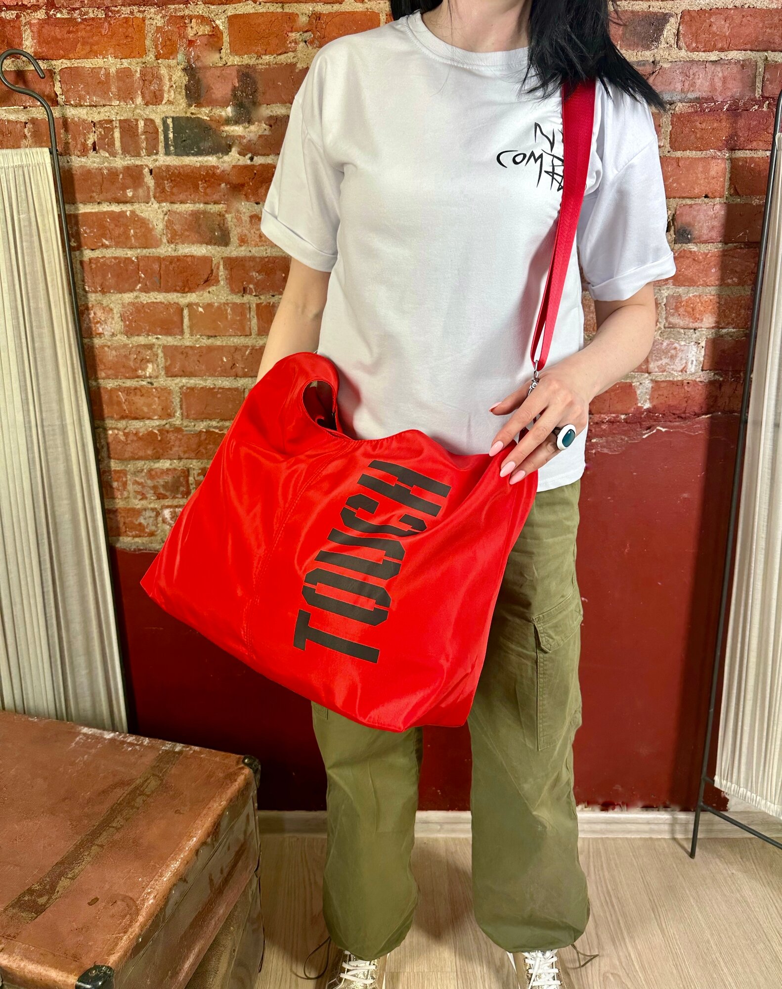 СохранитьСумка дорожная TOUCH плотная две ручки, широкий длинный ремень ярко-красная интересное: