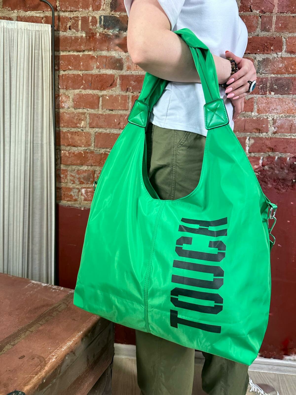 Сумка дорожная TOUCH плотная две ручки, широкий длинный ремень цвет зеленое яблоко