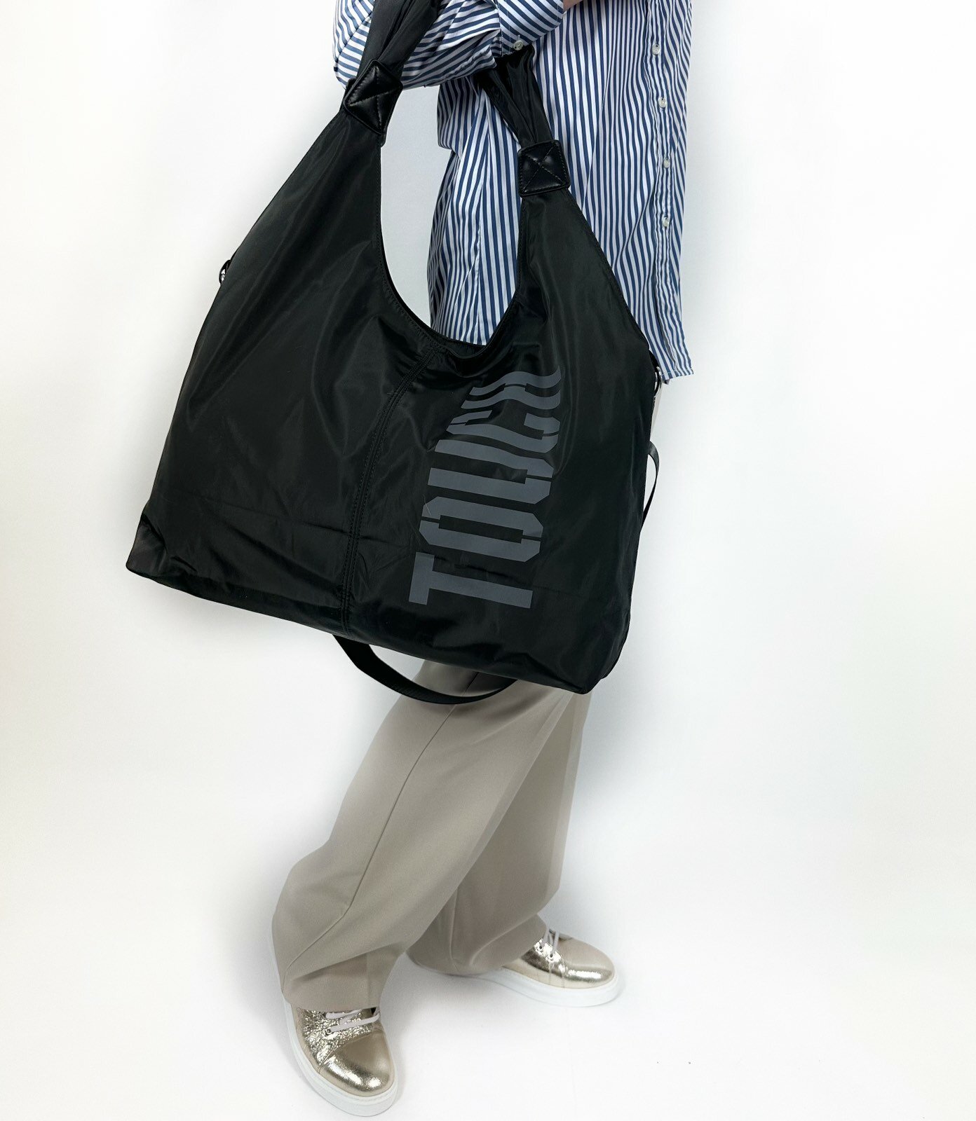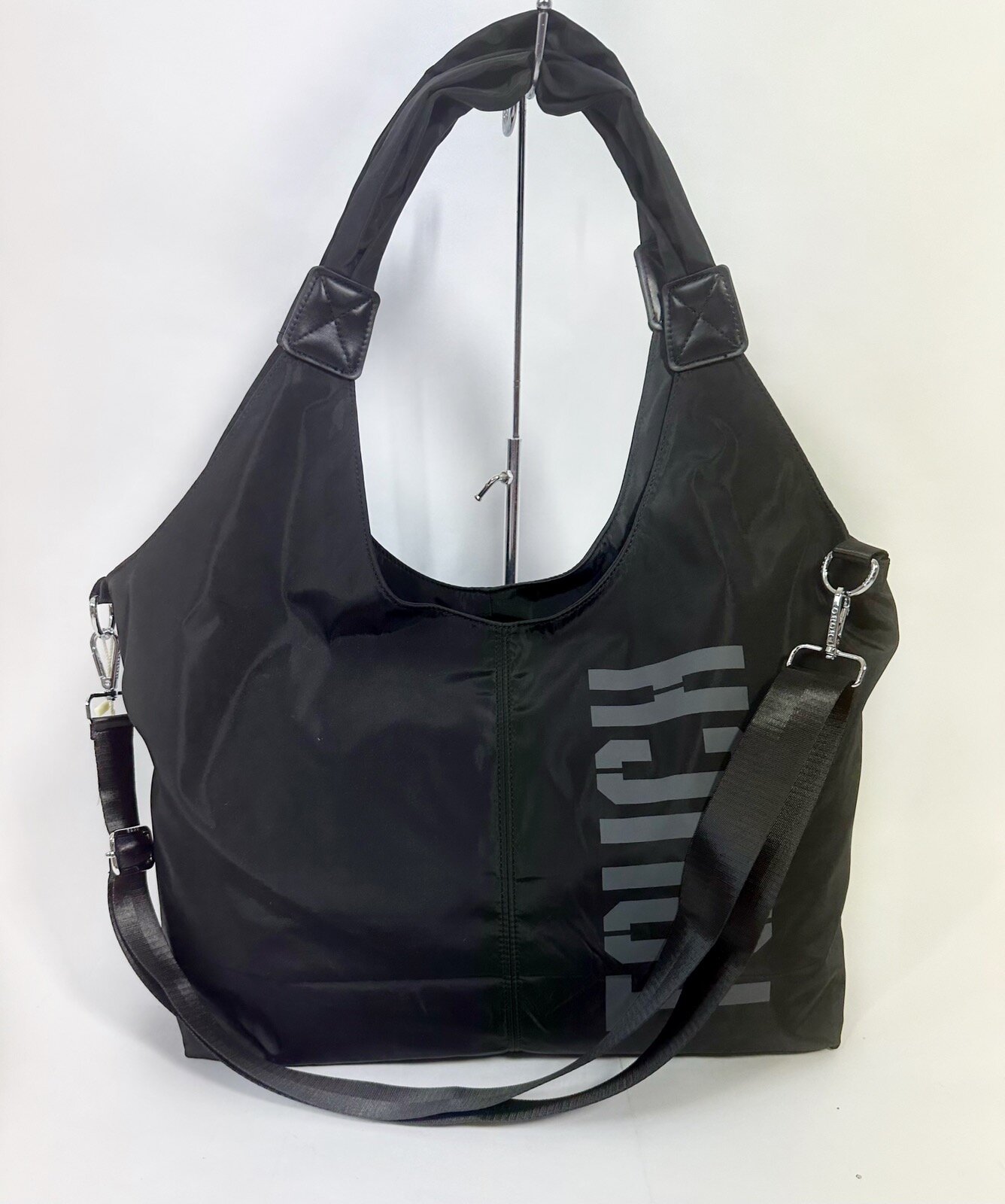 СохранитьСумка дорожная TOUCH плотная две ручки, широкий длинный ремень черная интересное: