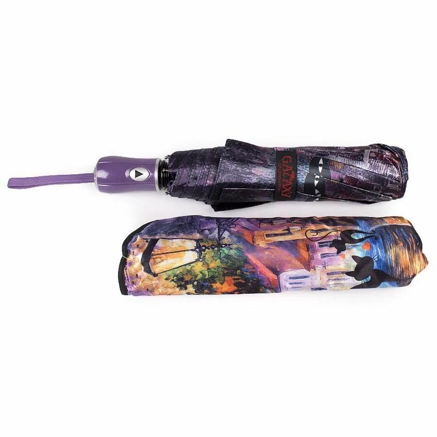 Купить Зонт женский Galaxy 3001 Коты в ночном городе сиреневая ручка полуавтомат 3 сложения