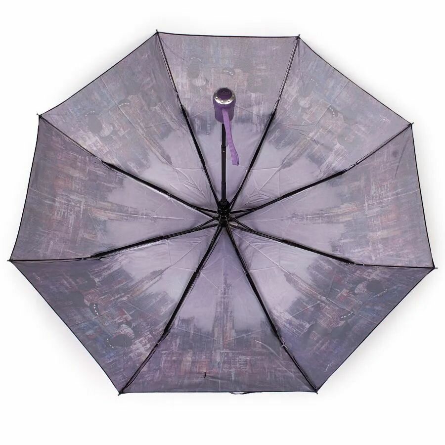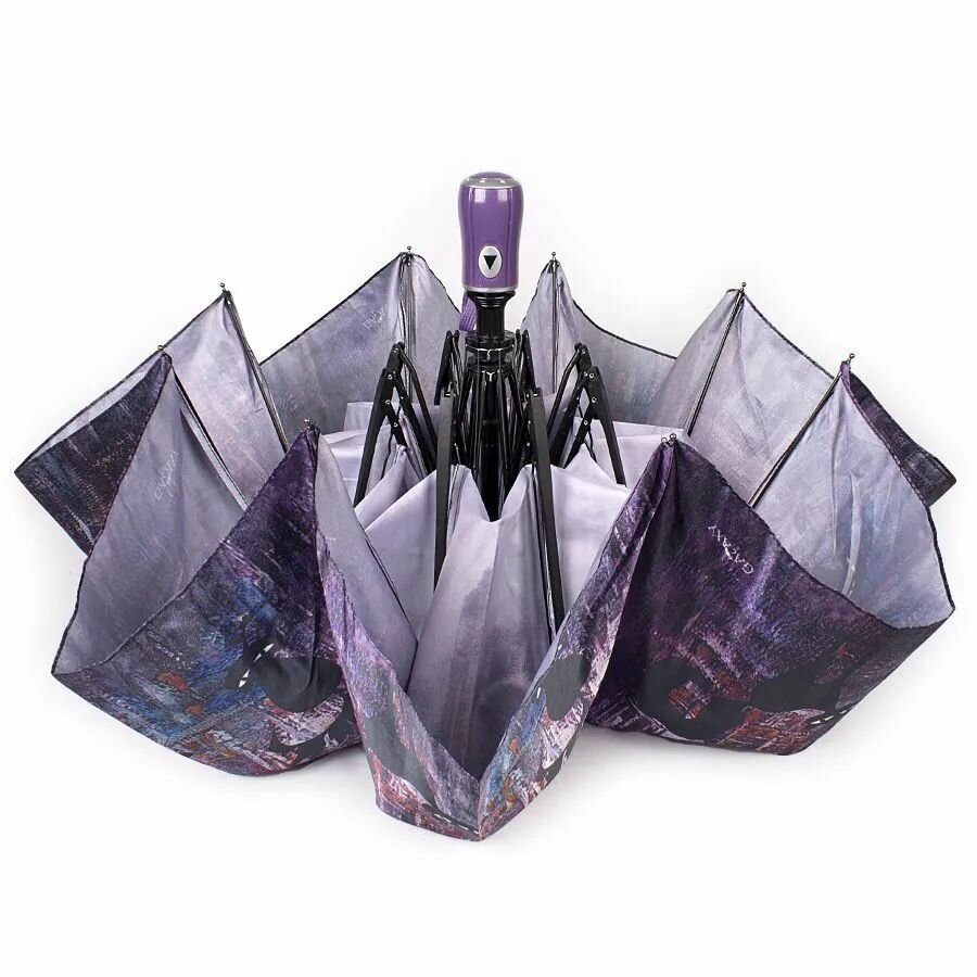 Зонт женский Galaxy 3001 Коты в ночном городе сиреневая ручка полуавтомат 3 сложения интересное: