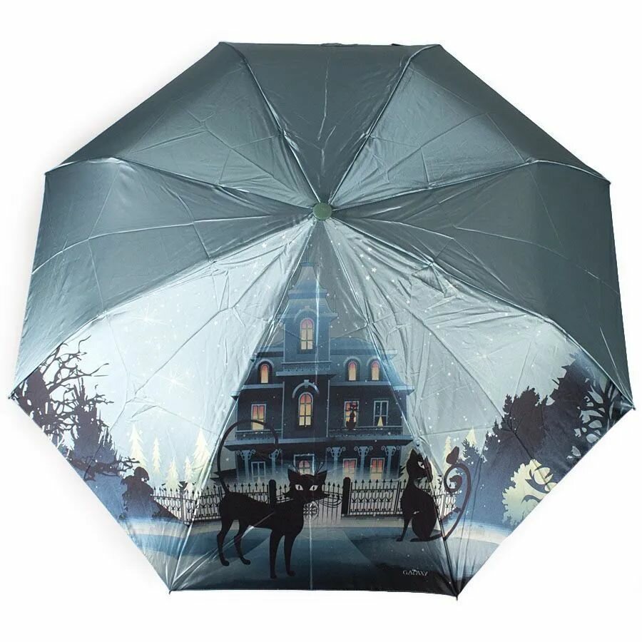 Купить Зонт женский Galaxy 3001 Коты в ночном городе бирюзовая ручка полуавтомат 3 сложения