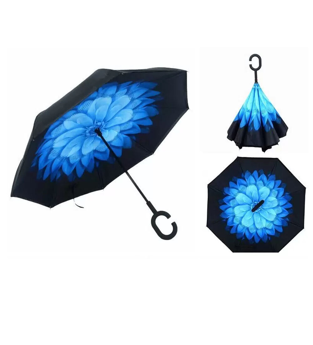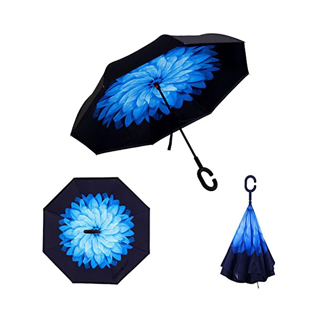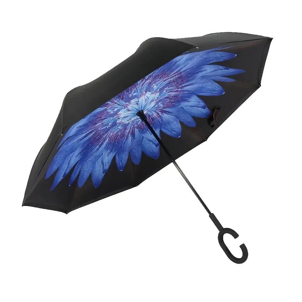 Купить Умный зонт - наоборот механический "Синяя хризантема" с обратным механизмом, 1 шт