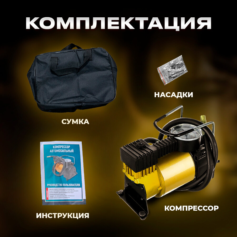 | Подробная комплектация | Компрессор автомобильный 1 штука, Сумка для хранения 1 штука, Адаптеры для накачивания 3 штуки, Руководство по эксплуатации 1 штука |