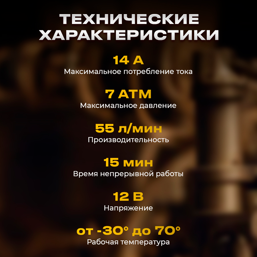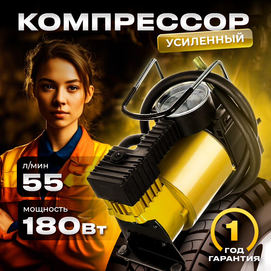 Автомобильный компрессор усиленный Forb 7070 (12 В, 180 Вт, 55л/м) / комплект: сумка, 3 насадки интересное:
