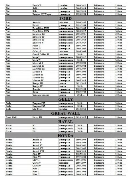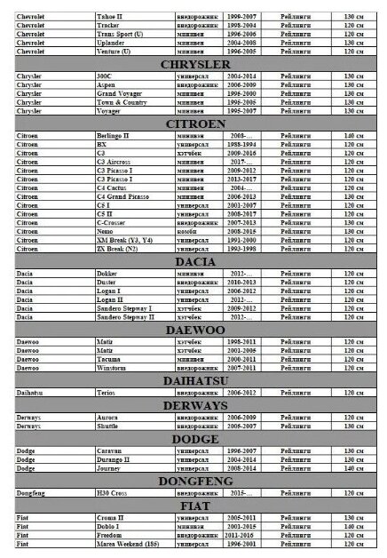 | Место крепления | на интегрированные рейлинги / на рейлинги |