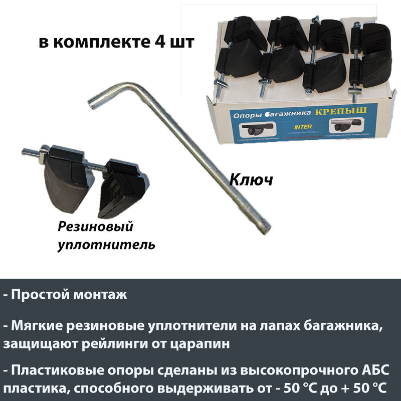 Комплект опор багажника INTER Крепыш на крышу авто с рейлингами (без поперечин) интересное: